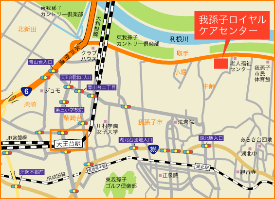 ⑤しばらく直進すると右手側に「我孫子ロイヤルケアセンター」が見えてきます。