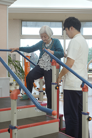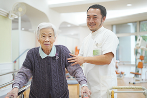 濱 野: より生活に直結する生活期のリハビリにもともと興味がありました。 機能回復はもちろん大事です。私も含め誰でも家で生活したいと思っていると思います。 そして安全に生活したいと思っています。 利用者様も自宅に帰る為にトイレや移動の訓練を中心にしています。 家族が介助するにしてもどのような方法で介助すれば安全か?その安全な環境や方法を 利用者様や家族と一緒に作っていきたいと思いました。