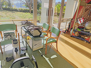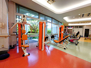 空いた時間に自分のペースで運動できます。運動器具は目的別に用意しており、手・足・お腹周り・体力作りと充実しています。