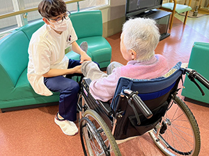 リハビリスタッフとの機能訓練と会話を楽しんでいる。