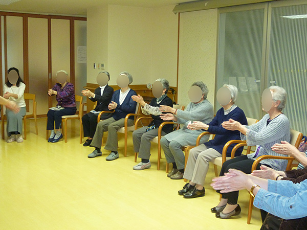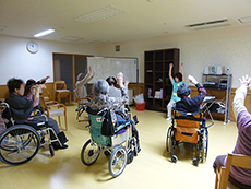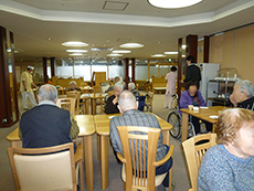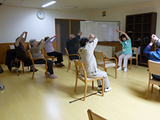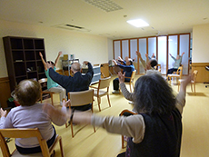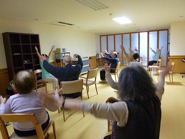 ■いきいき体操 2015.01.23 アイムス旭山公園では月曜日~金曜日の毎日、『いきいき体操』と称してウォーミングアップ体操、歌に合わせた体操、ラジオ体操など色々な体操を組み合わせて行っています。
