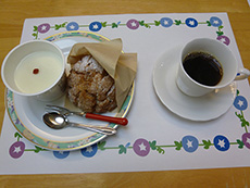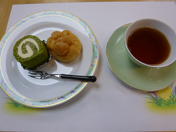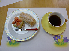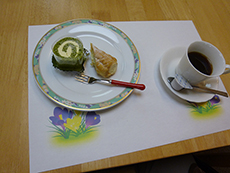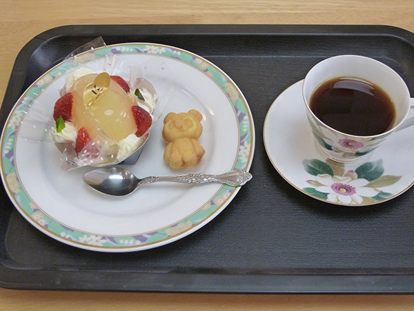 今回はケーキの種類を増やしてお好きなケーキを2種類選べるようにしてみました。コーヒーもいつもより濃いめに入れたのが、好評でした。