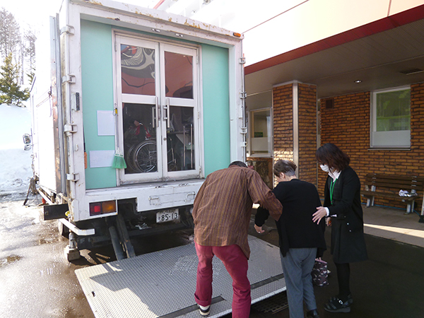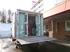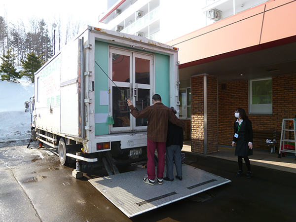 ■ファミリーマート移動販売 2015.02.20 今月から『ファミリーマート円山西町店さん』が移動販売に来ていただきます。ファミマさんは食料品の他に『無印良品』の取り扱いがあったり、『お化粧品』や『日用雑貨』『雑誌』等の商品も豊富です、売り切れてしまった商品はお店が近いので、持ってきていただきました。まだまだ外が寒い季節には、大変ありがたいサービスです。