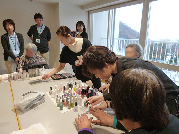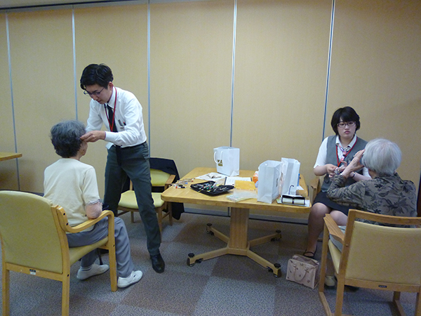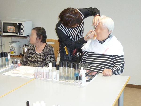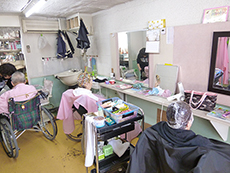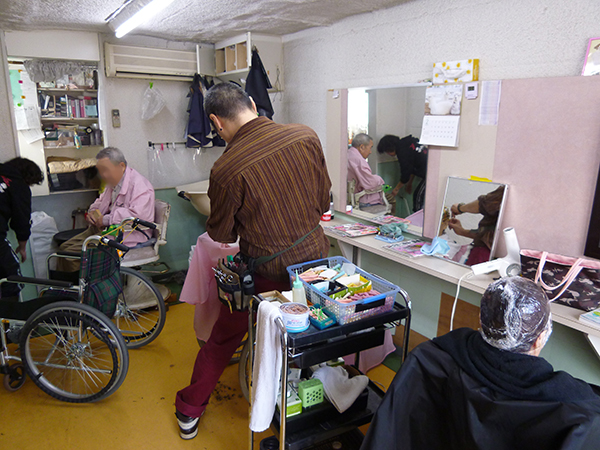 ヘアカットだけでなく、カラーやパーマも対応できるので、なかなか美容院へ行く機会が無い方も施設へ来ていただけるので、助かります。