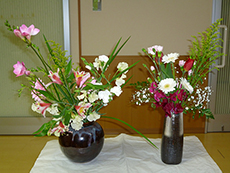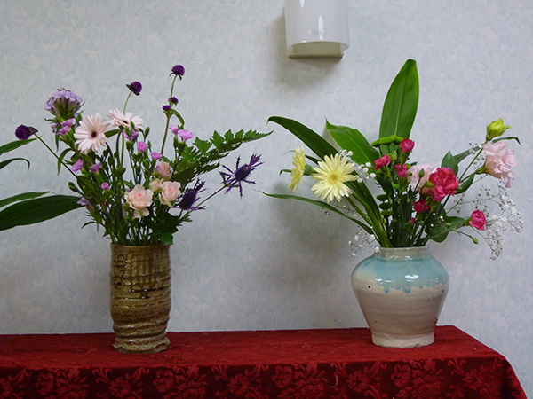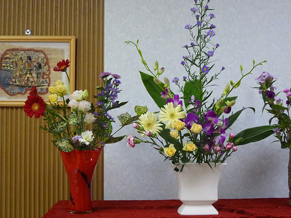 フラワーサークルはお花の好きな方が流派にとらわれず自由にお花を生けこみ楽しんで頂いて、お互いのお花を眺めながらお茶を頂いています。