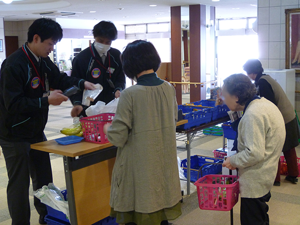 次回より販売時間を30分早めて11時からにします。購入される品物は賞味期限や前回購入したものがまだお部屋の冷蔵庫にある等を職員が確認しながらお買い求めいただくようにしております。