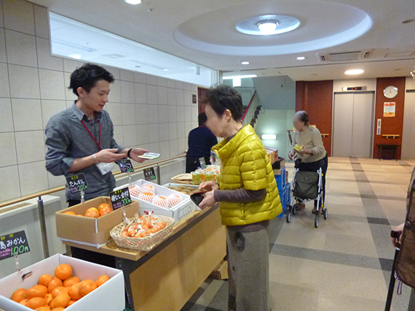 その他『デコポン』『いちご』『干し柿』も好調に売れていました。お部屋でサラダを召し上がりたい方ように『レタス』『きゅうり』も持ってきていただきました。