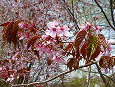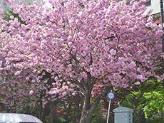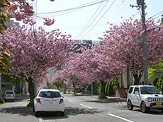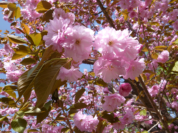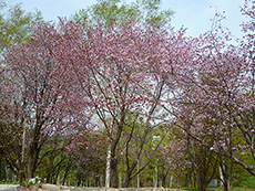 ■桜並木 2015.05.08 先日の観桜会では少しさみしい状況の桜でしたが、今秋から『八重桜』が開花し始めてます。