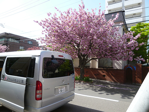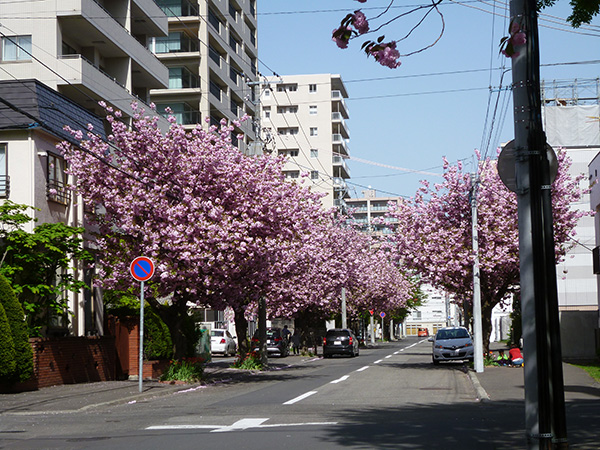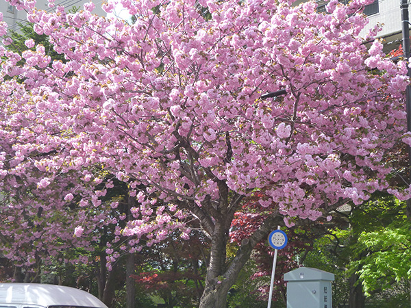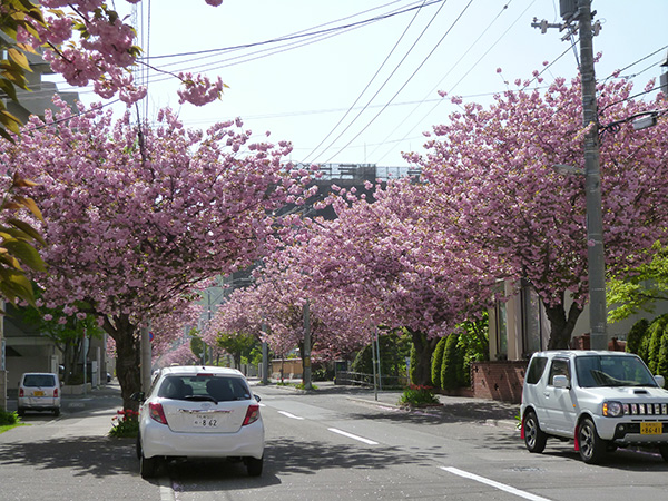 当初は石狩の戸田記念墓地公園へお花見に行く予定でしたが、今年は早々に終わってしまったので、アイムスの近くの桜並木へ行ってきました。 八重桜が見事に咲き乱れてます。