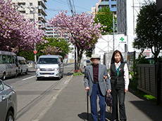帰りはお隣の旭山記念公園へお散歩、札幌市内が一望できる眺望とこちらでも桜が見ることができました。