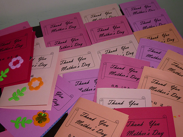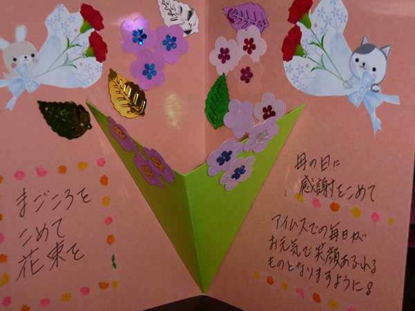 ■母の日 2015.05.13 職員から母の日ということで、日ごろの感謝の気持ちを込めた『メッセージカード』を作成しました。