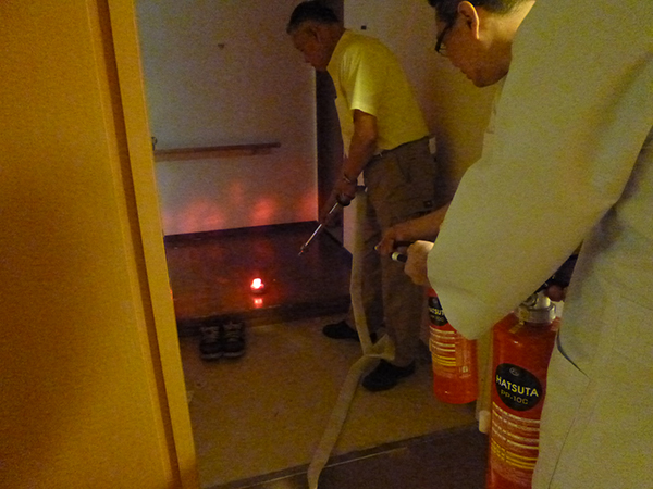 避難訓練終了後は消防から借りた『電気火災による危険性』のDVDを上映を行い、注意を喚起しました。