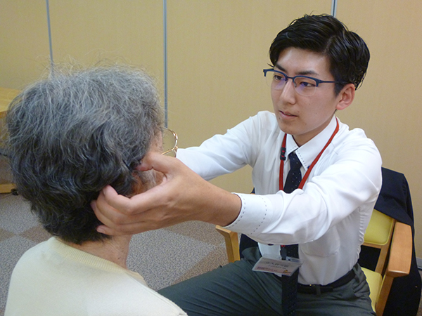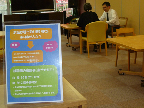 最近会話中に聞き返すことが多くなった、電話で話す声が大きくなった、テレビの音量が大きい等と家族から言われ気になっているという入居者様の声をお聞きして、アイムスでの補聴器診断をお願いしました。