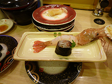 今日のお勧めは炙り大トロサーモン、野付産の活ホッキでした。その他にも大えび、ほたてもプリプリで美味しかったそうです。