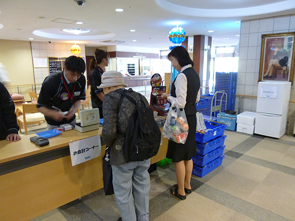 たくさん買いすぎた方は職員がお部屋まで一緒にお持ちします。