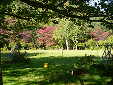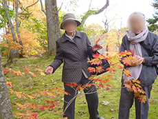 ■アートセラピー 2015.10.19 ■お散歩 2015.10.19 10月17日今日はお天気が良くて最高気温も20度になるとのことで、中庭へお散歩にいきました。10月に入ってアイムスの庭も少しずつ緑の葉が黄色や赤に染まり始めています。緑、黄色や赤のコントラストがとても綺麗で、入居者様も大変喜んでいただけました。