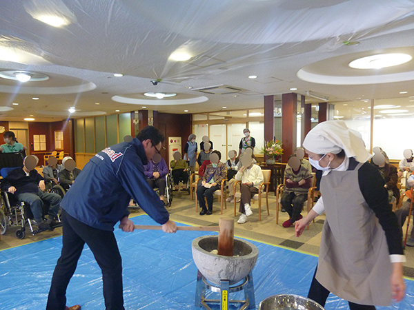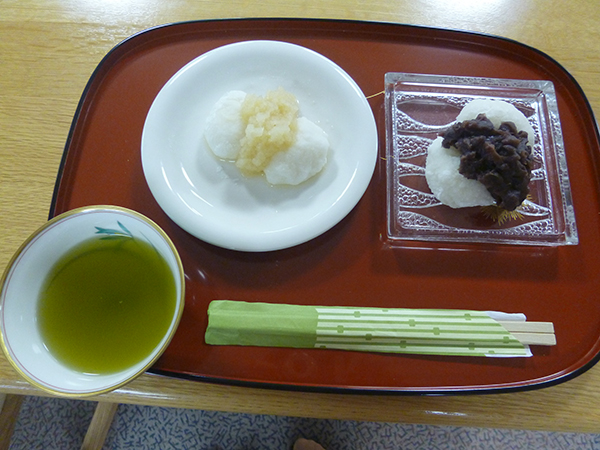 お餅に大根おろしと粒あんをのせました。つきたてのお餅は美味しいねと話され来月の鏡開きのお汁粉も楽しみと話されていました。