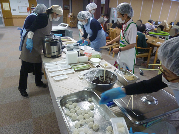 入居者様の中で餅を召し上がれない方は、出来るだけ餅に近い食感で安全なざっくり餅を召し上がって頂き好評をでした。