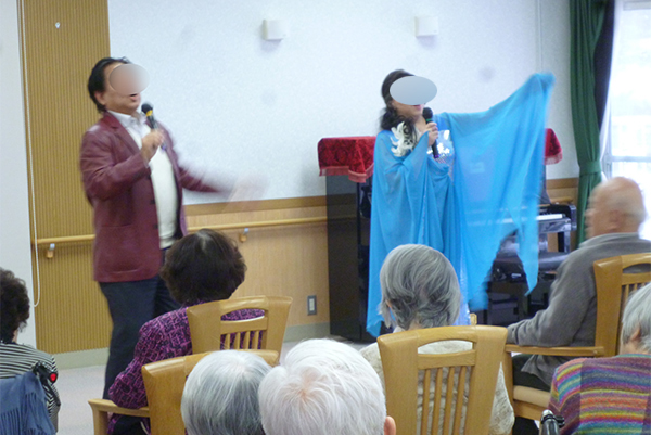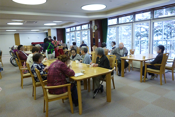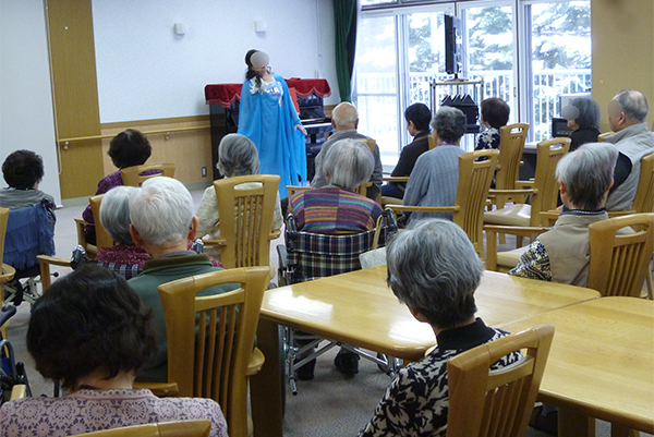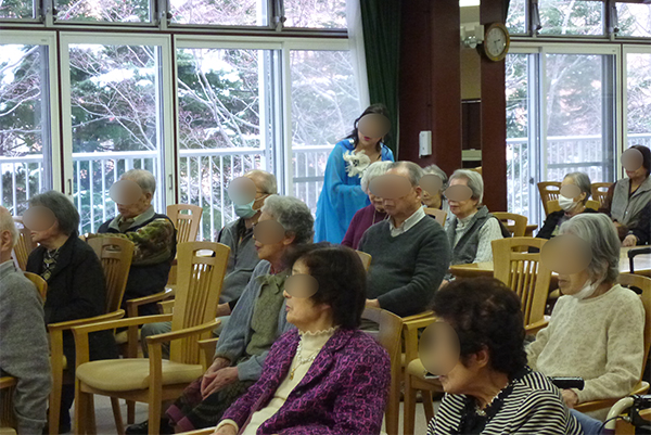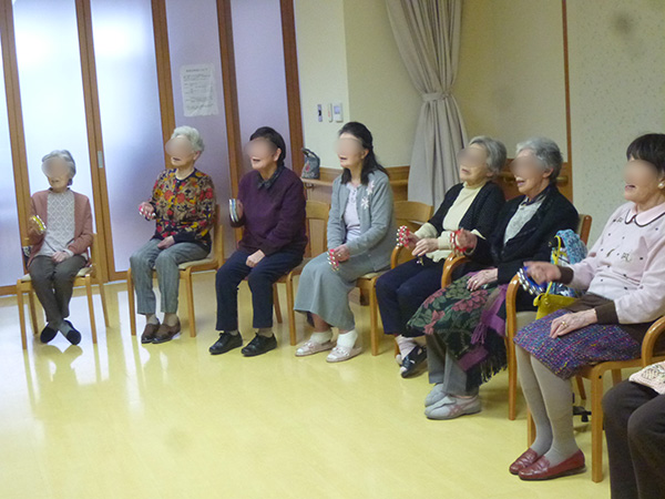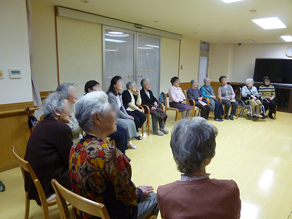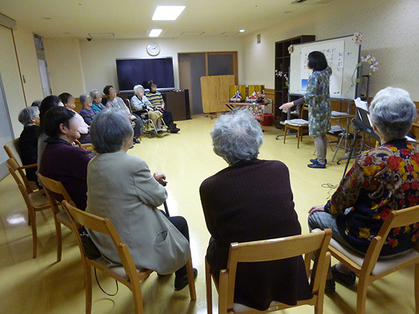 今回は、最近あまり声を発する事が少なくなっている為、入居者の方々に読んで頂く朗読を始めてみました。老化予防の一つを楽しみながら発声練習~新聞抜粋~詩集などを読むことで脳に刺激を・・・入居者の方々も次回を楽しみにされていました。
