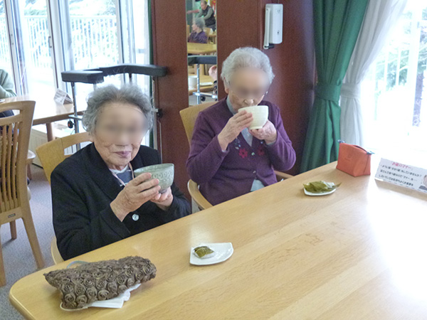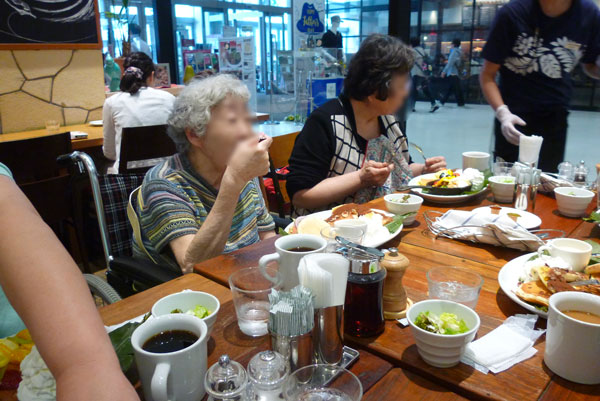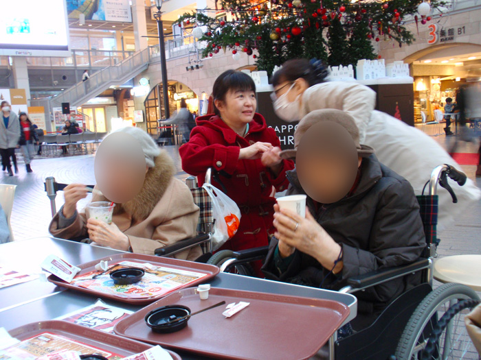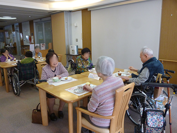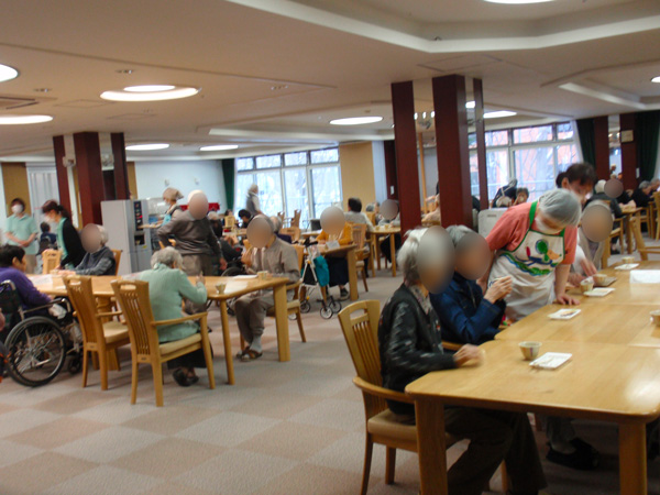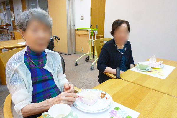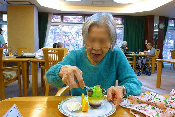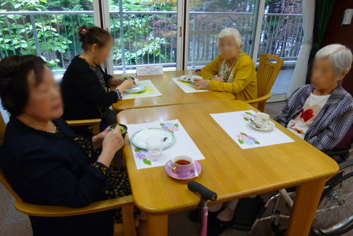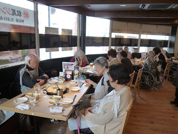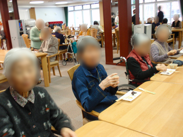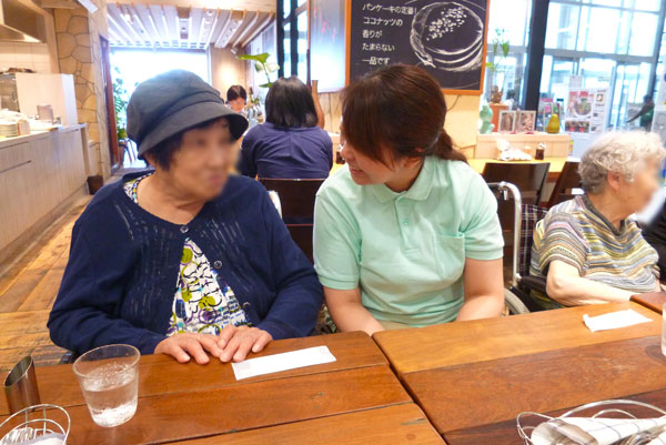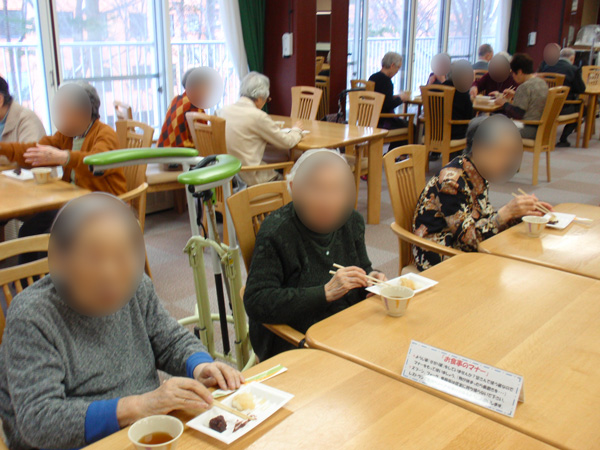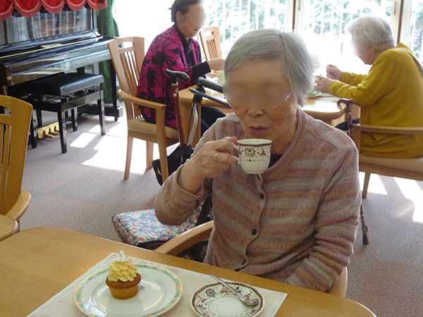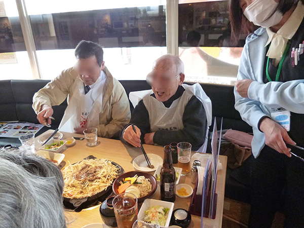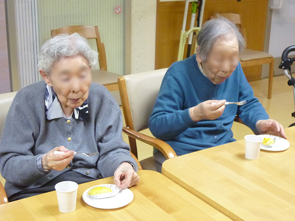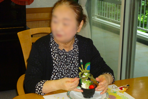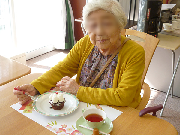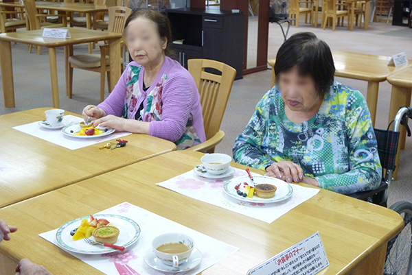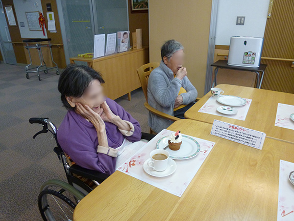 「お腹いっぱいに食べましたと話されデーザートは別腹」とケーキを食べられていました。帰り際には楽しいから又連れて来て下さいねと話され皆さんもデザートも黙々と食べられていました。