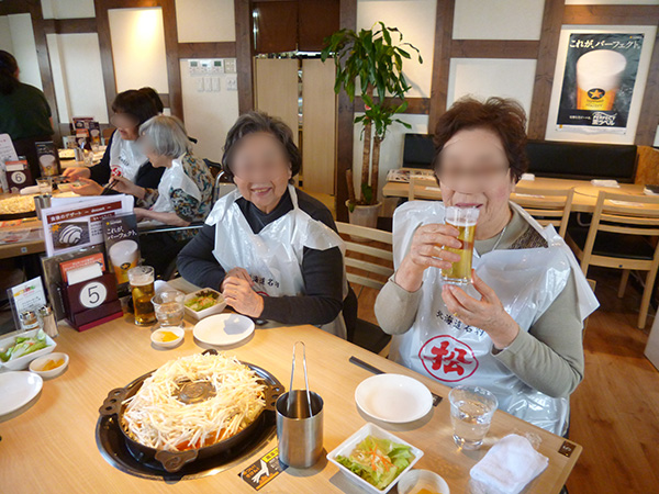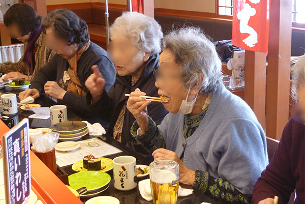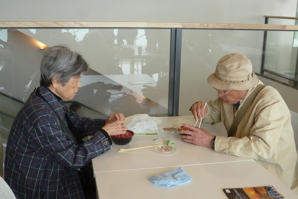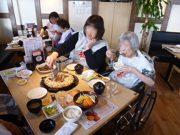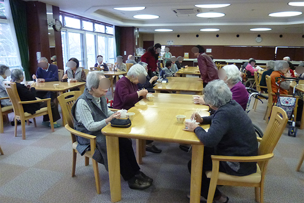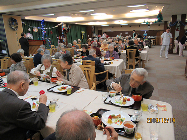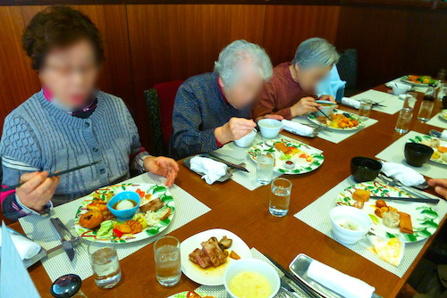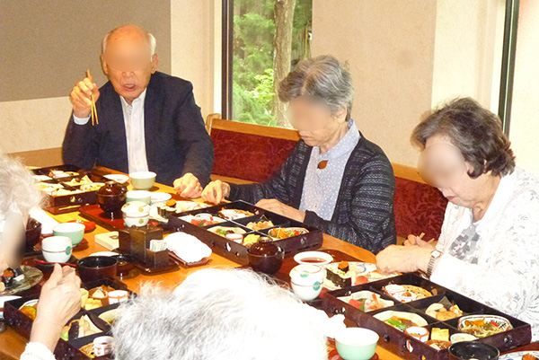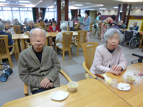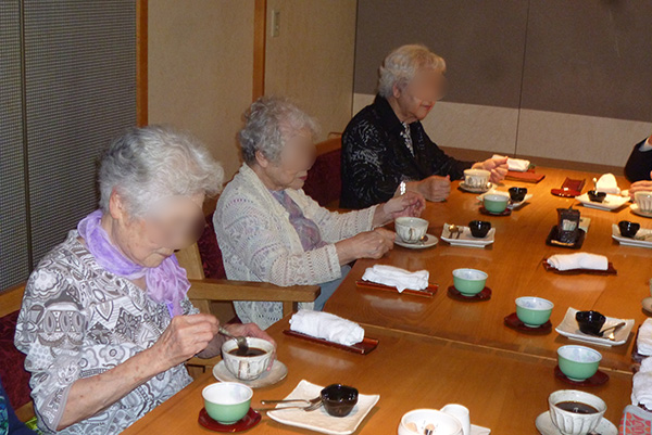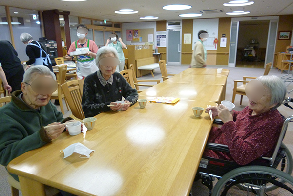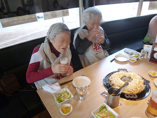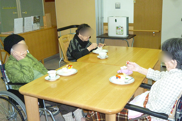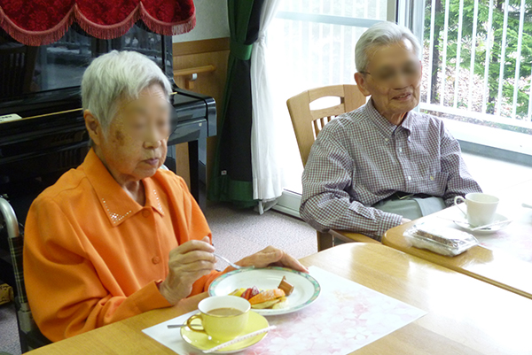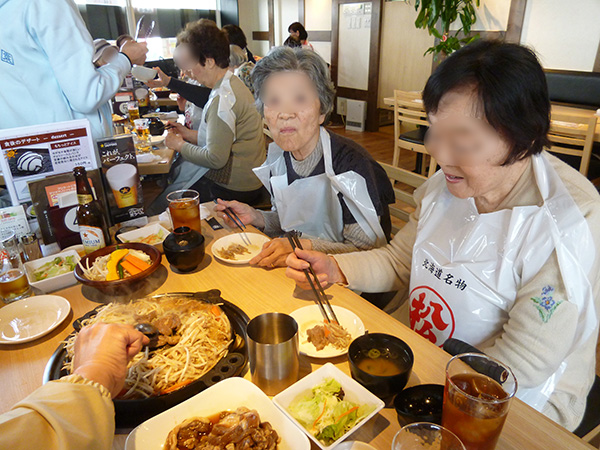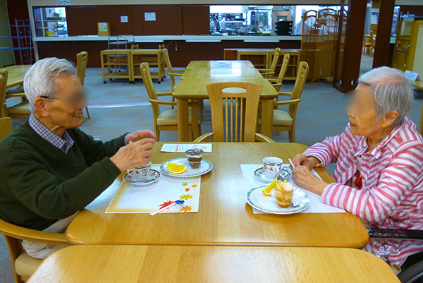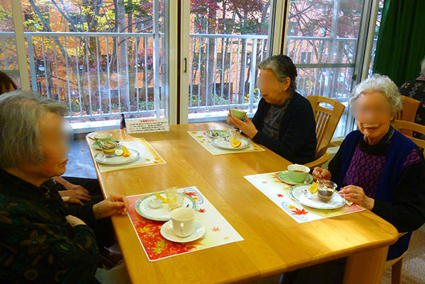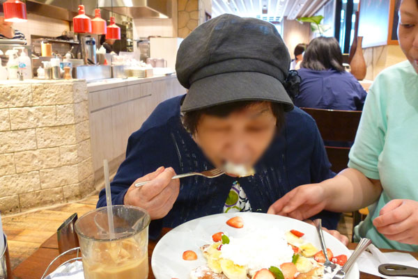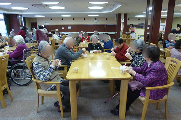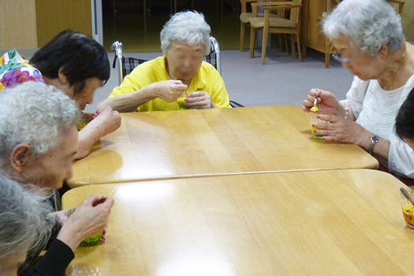 「お腹いっぱいに食べましたと話されデーザートは別腹」とケーキを食べられていました。帰り際には楽しいから又連れて来て下さいねと話され皆さんもデザートも黙々と食べられていました。
