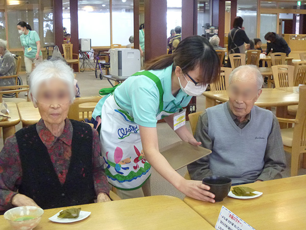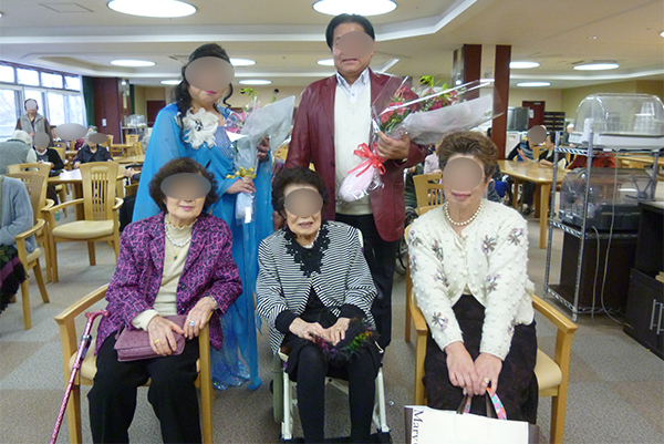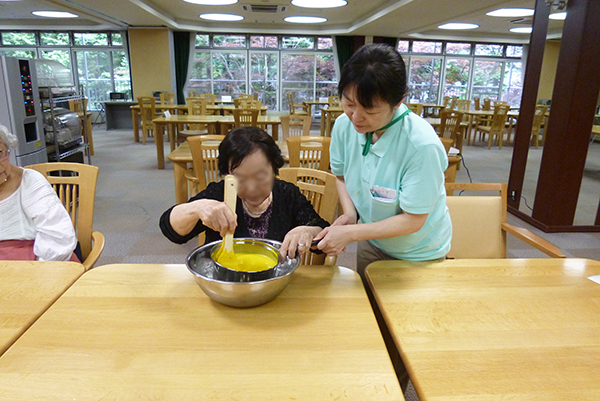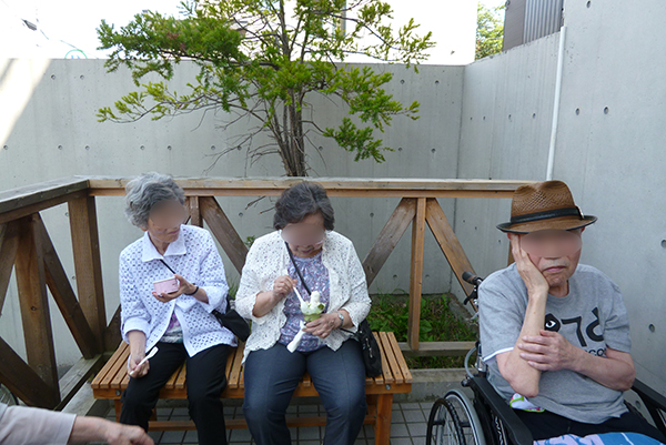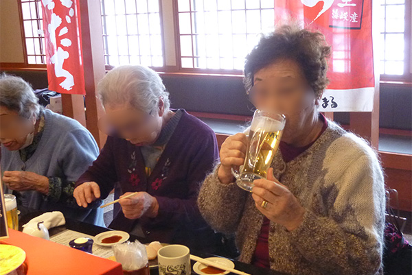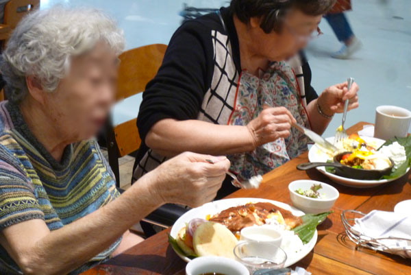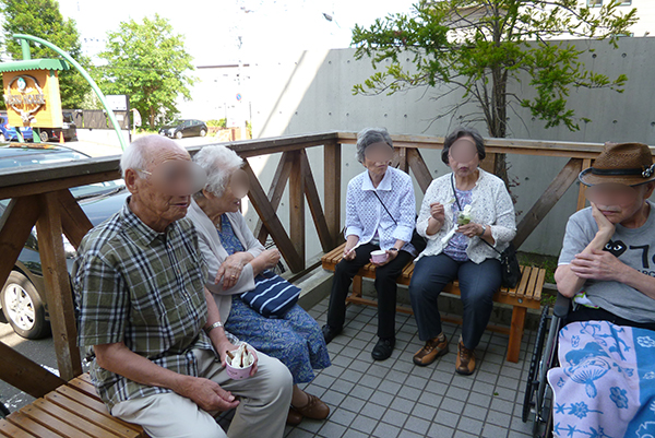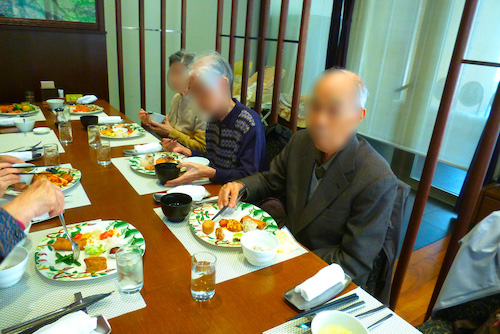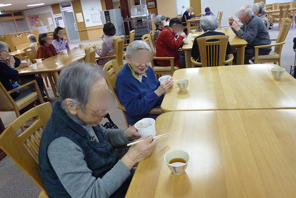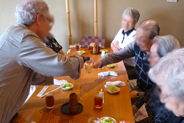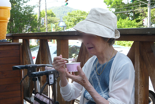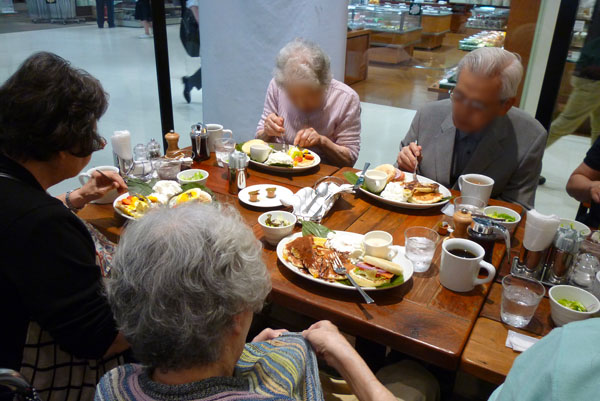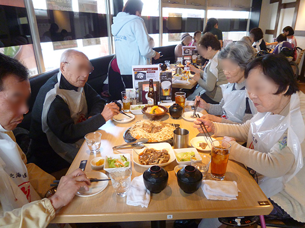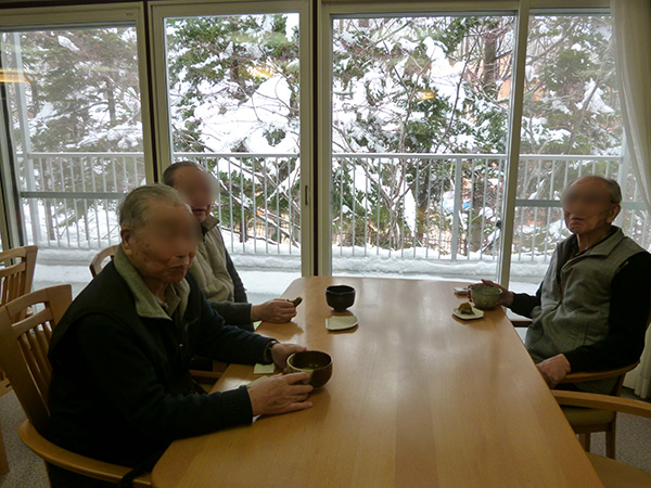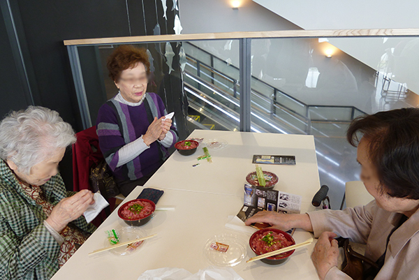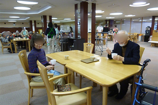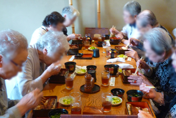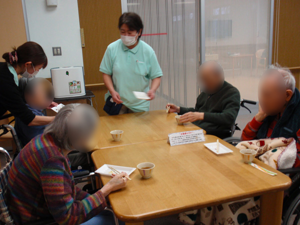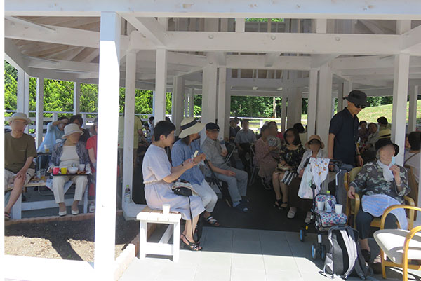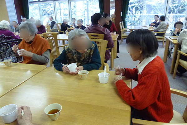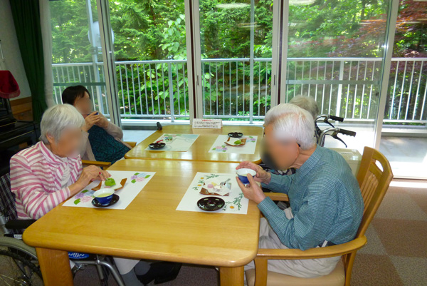 「お腹いっぱいに食べましたと話されデーザートは別腹」とケーキを食べられていました。帰り際には楽しいから又連れて来て下さいねと話され皆さんもデザートも黙々と食べられていました。
