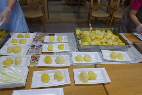 調理レク 2018.10.27 今月は「いも餅」・「かぼちゃ餅」を作りました。