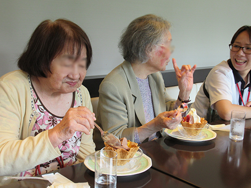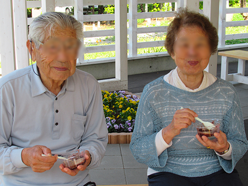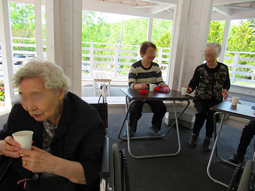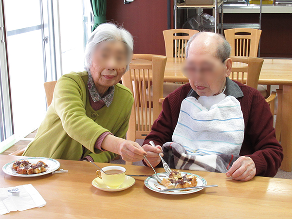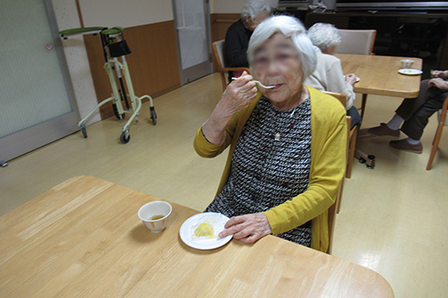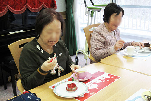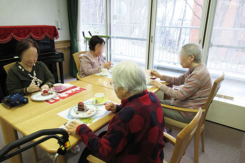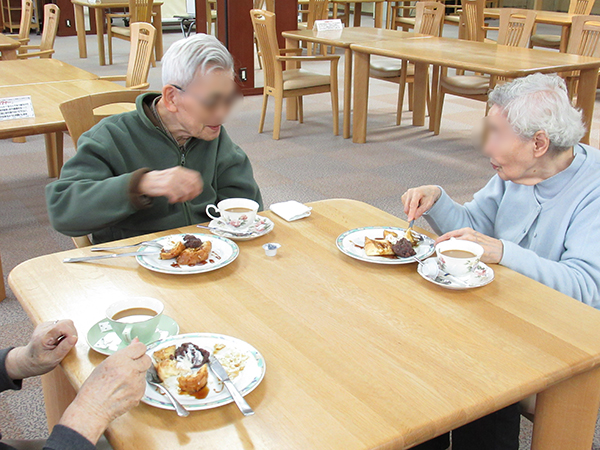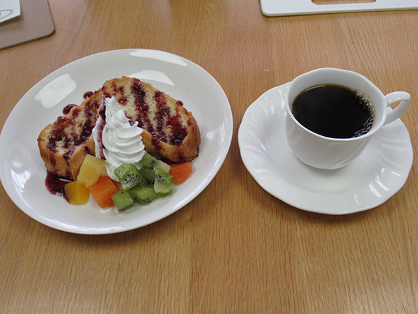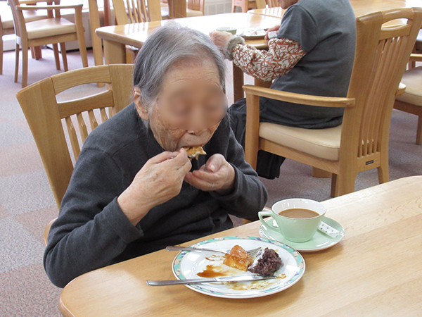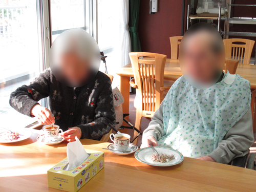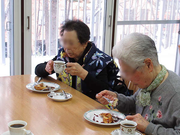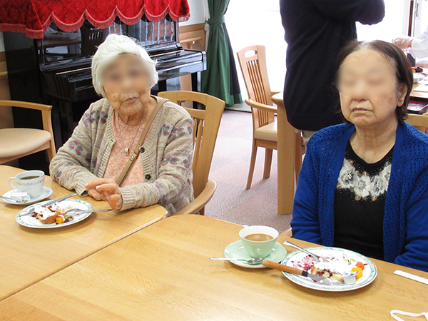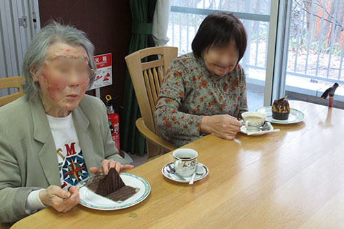 入居者の方は「コーヒーの香りもいいけれどとても食べやすいチーズケーキで美味しい」と話され来月も楽しみと話されていました。