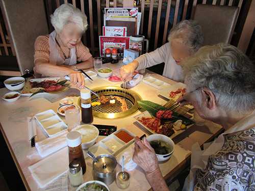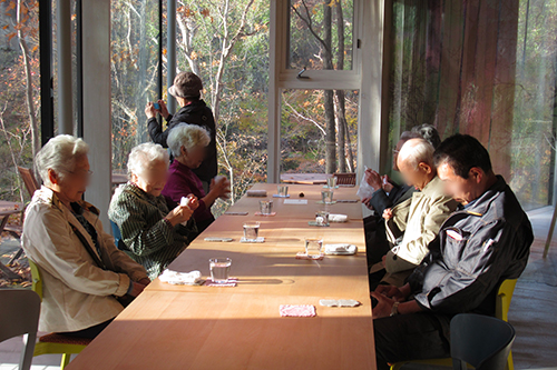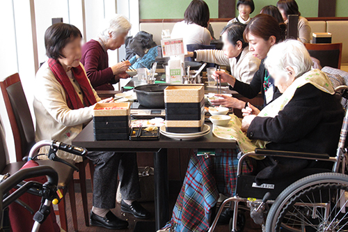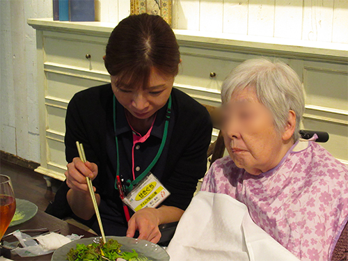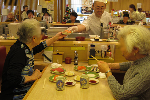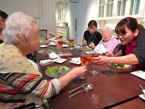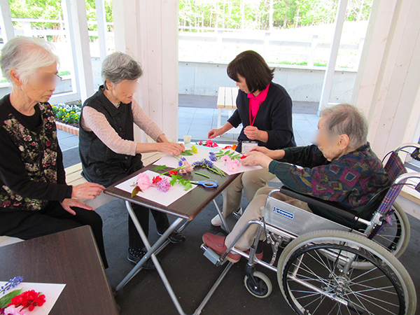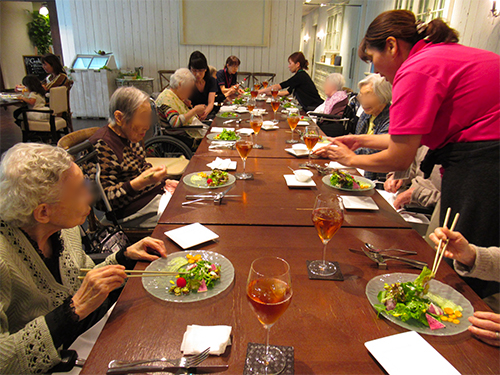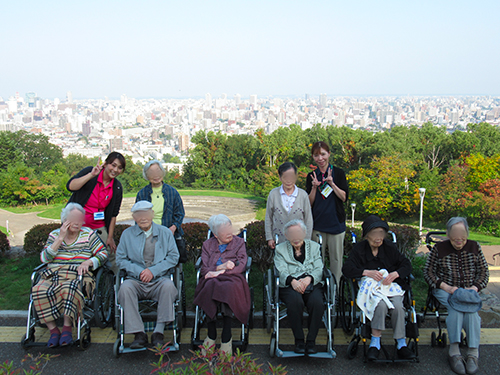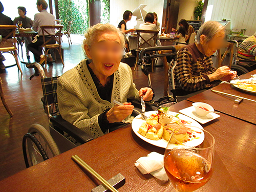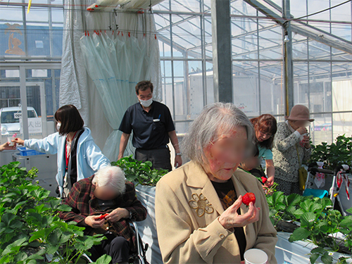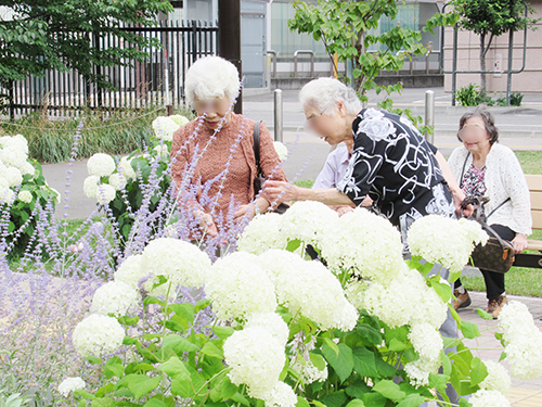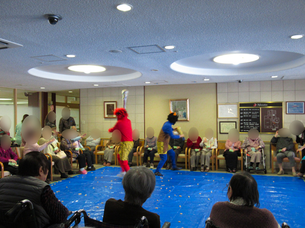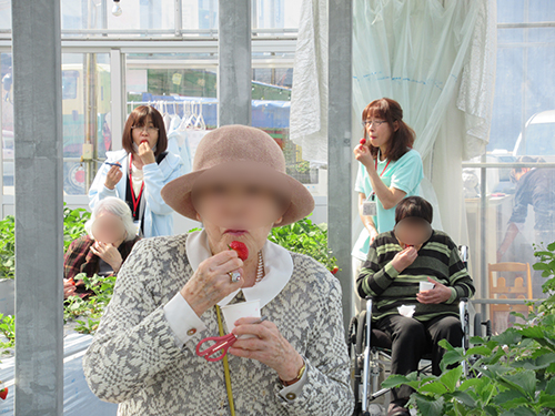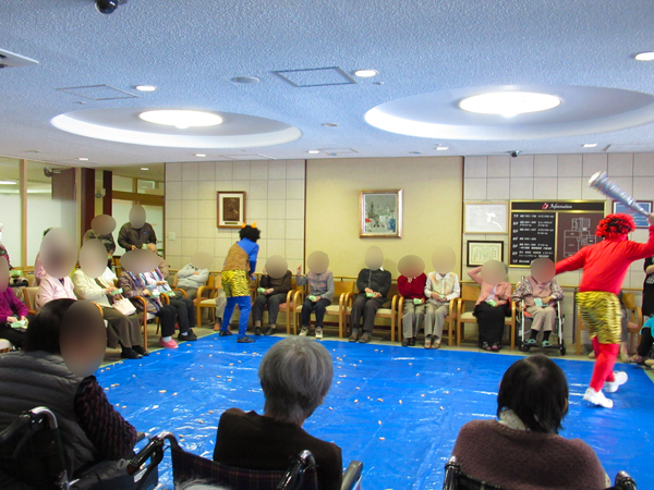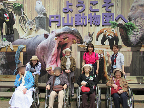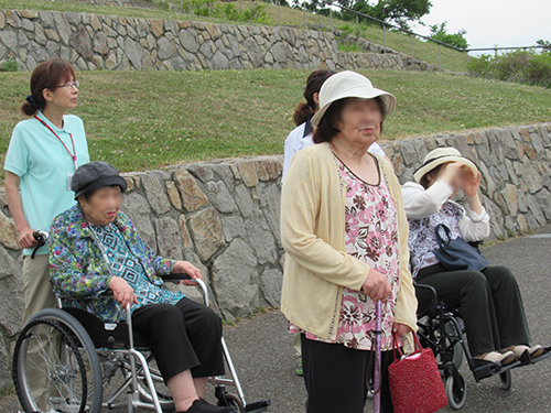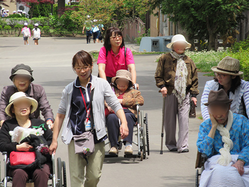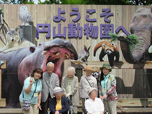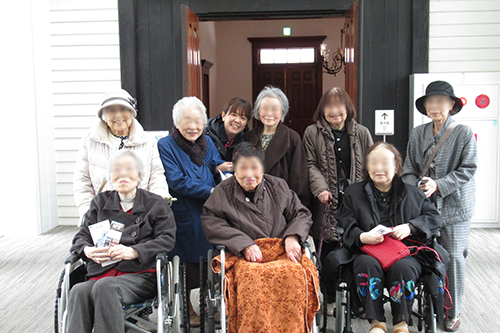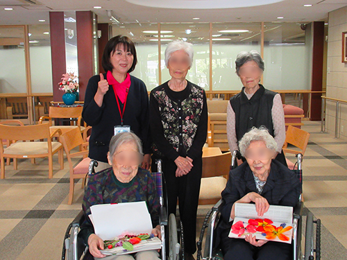 入居者の方は以前に飼っていた方が多く犬たちが来てくれるのを楽しみにしていて抱っこしたり散歩したりして入居者方々は犬たちに癒され満面の笑みがこぼれていました。