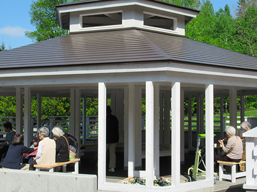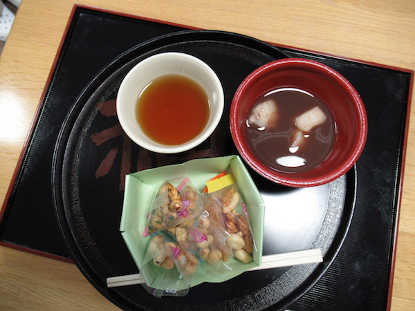 今日は気温が高くお天気も良かったので、東屋で美味しいぜんざいを頂きました。