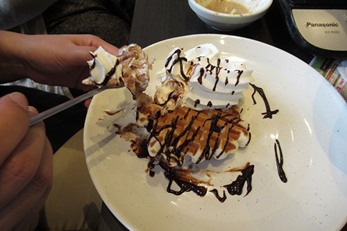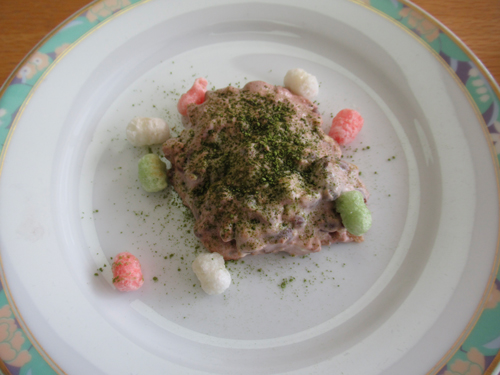 次回もまた来てねと犬に話しかけていました。アイムス喫茶 2019.5.28 調理レク 2019.5.17 今日は、調理レクで「豆腐白玉ぜんざい」を作りました。