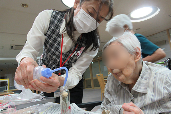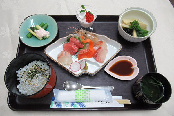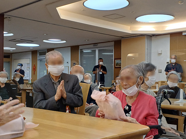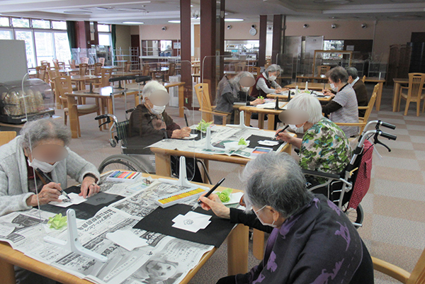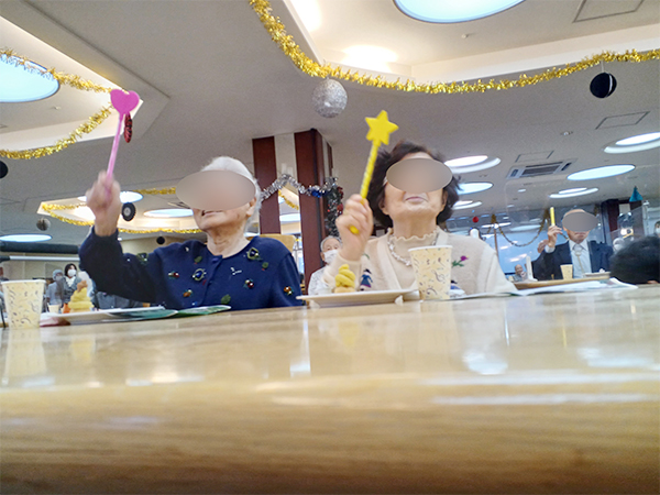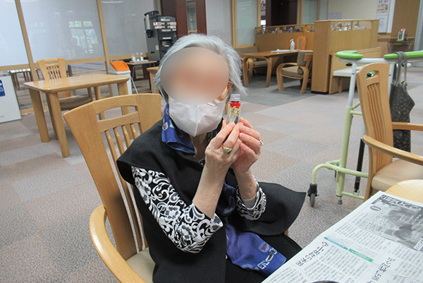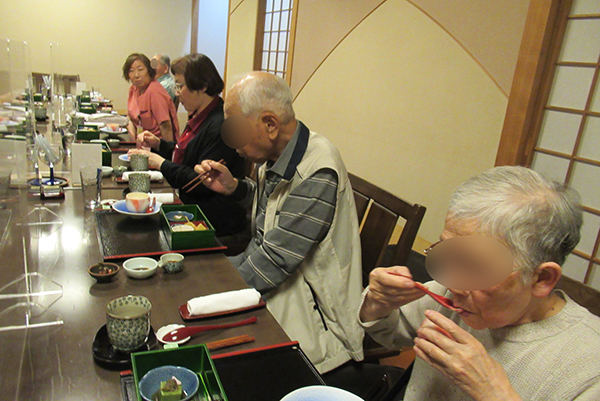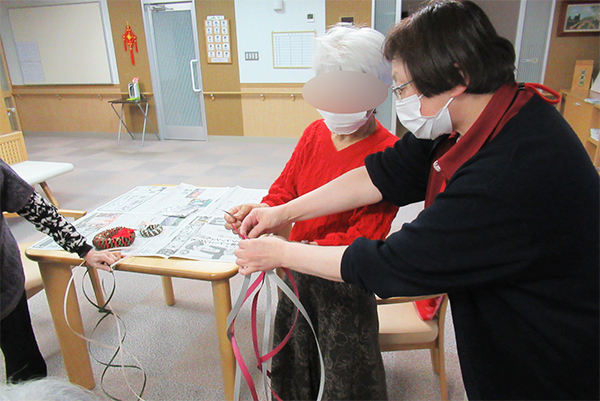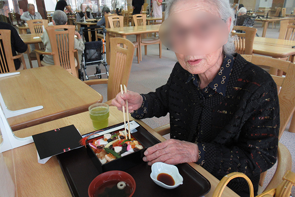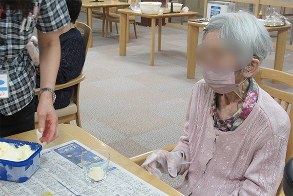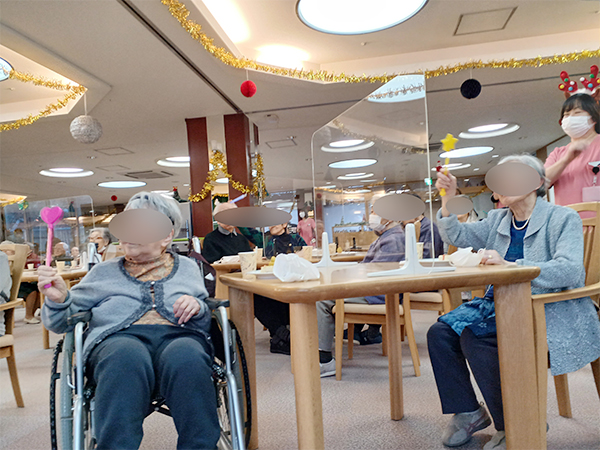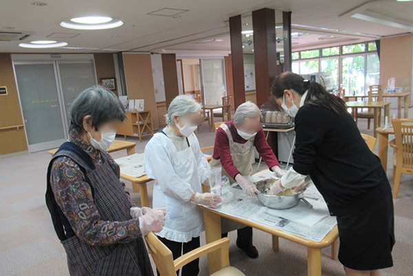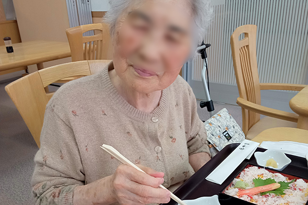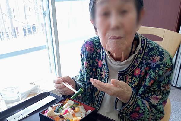 | 入居者様の無病息災を祈願して「鏡開き」を行いました。 お供え餅をお汁粉にして、餅が固くて食べられない方にもムース餅入りのお汁粉を提供させて頂きました。 入居者様からは「今日のお汁粉はちょうど良い甘さで美味しいです」「100歳過ぎてお餅を食べられて嬉しい」等と話されていて、おかわりをされる方もいて甘くて温かいお汁粉は体と心を温めてくれたようです。 | |||