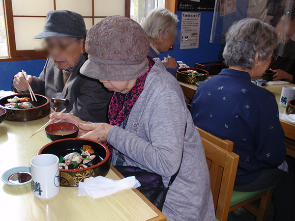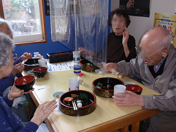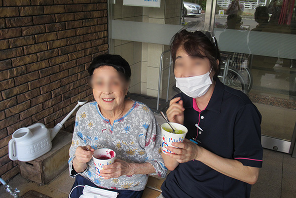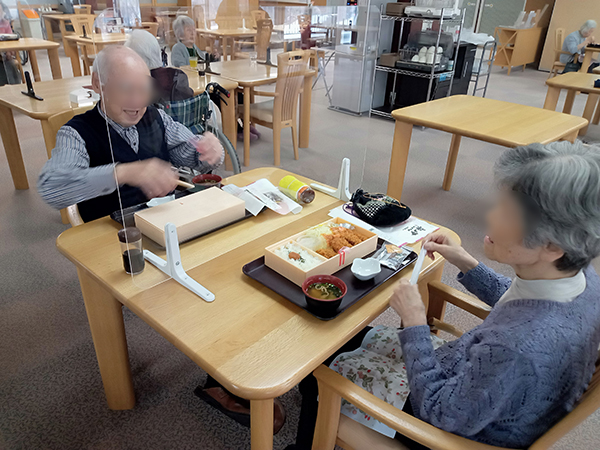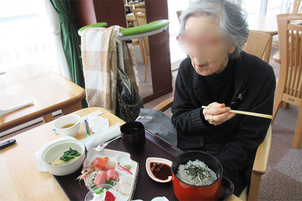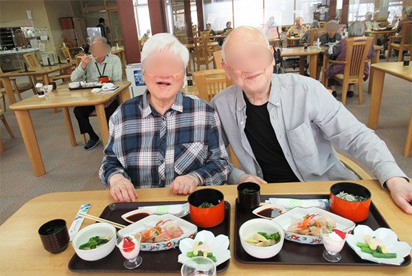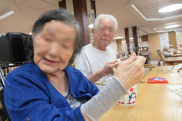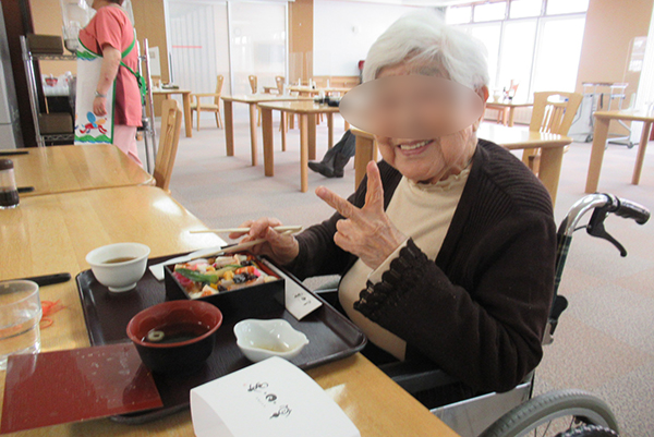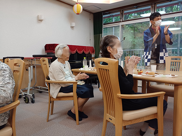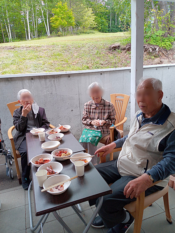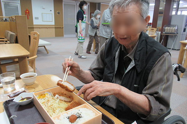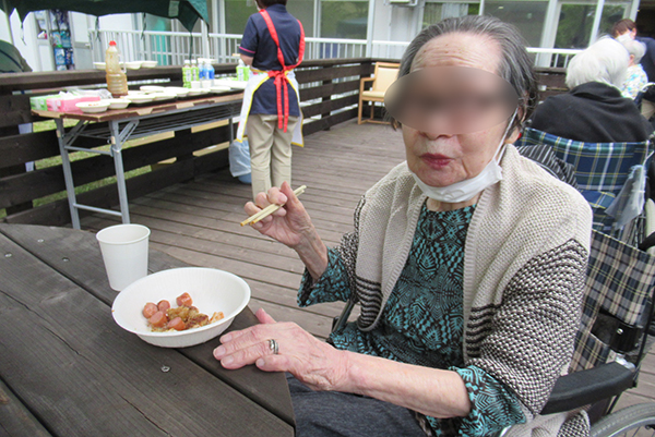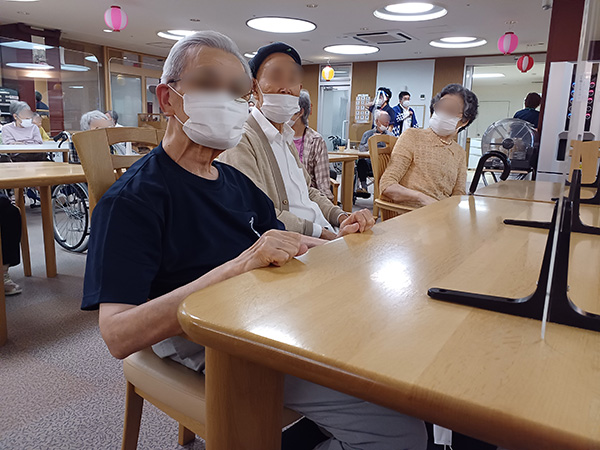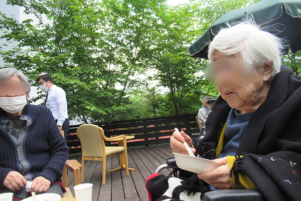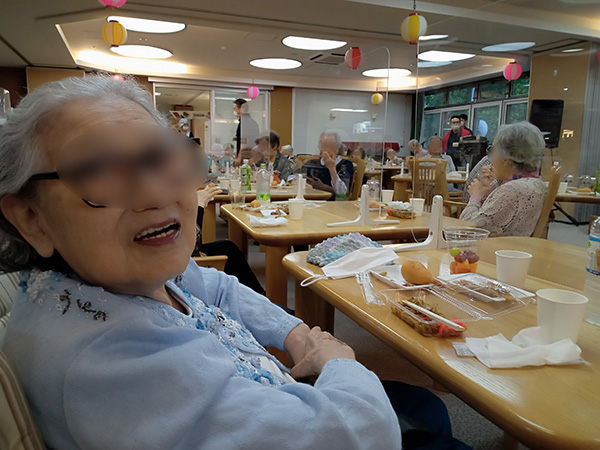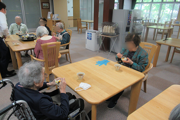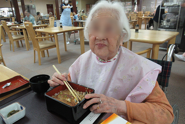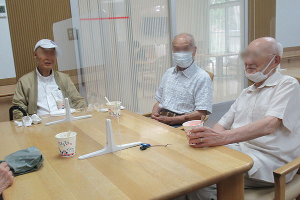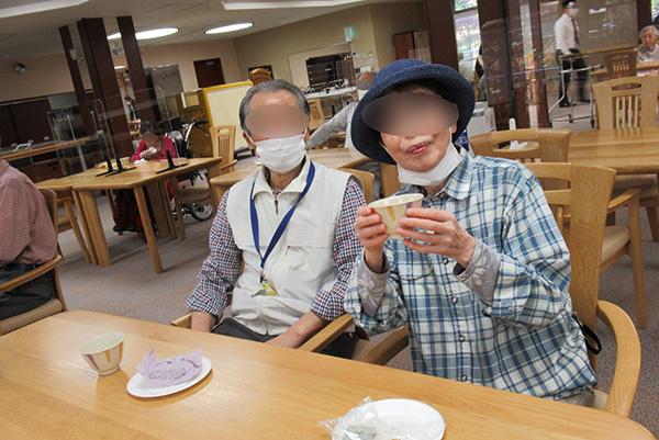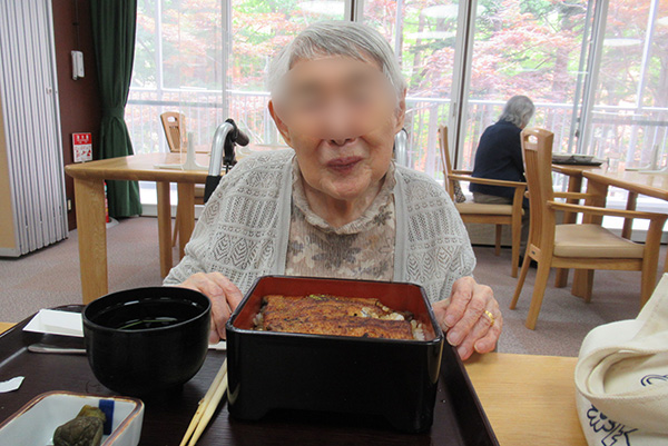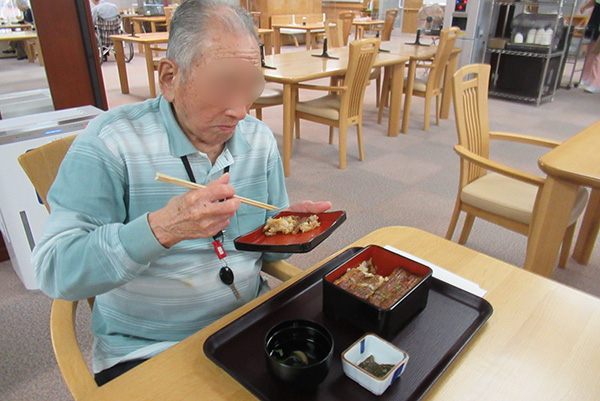 | 入居者から夏バテ防止に美味しいうなぎが食べたいと要望があり うな明のうな重を配達してもらい食べてもらいました。 「食べやすく美味しい」、「肝吸いが付いていて感激した」など喜びの声を多く聞くことが出来ました。 食後にコーヒーを飲みながら入居者同士の会話も弾んでいました。 |