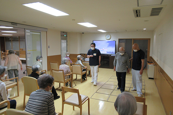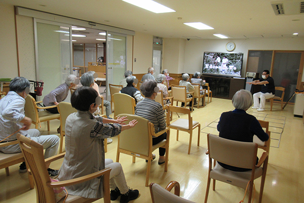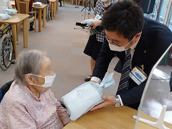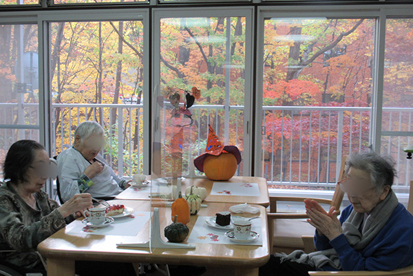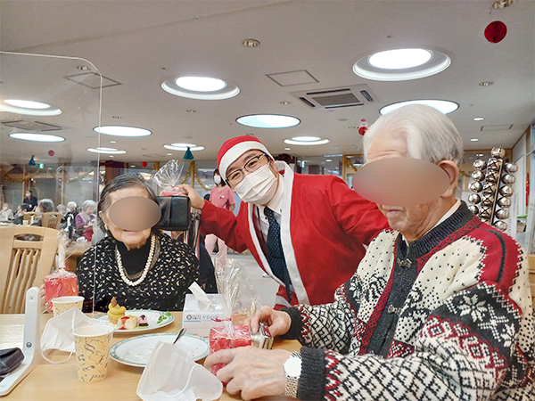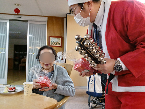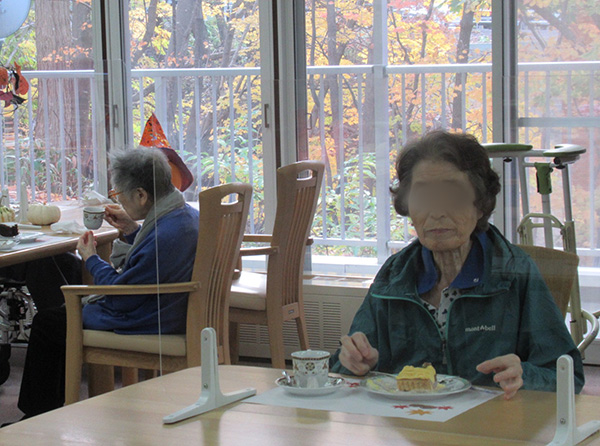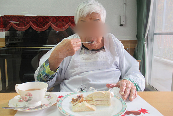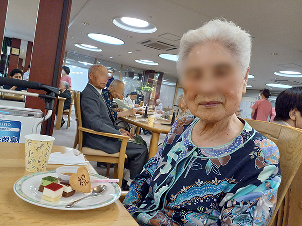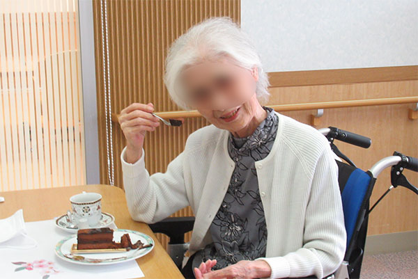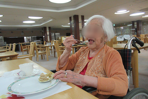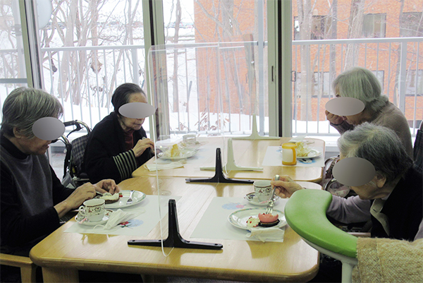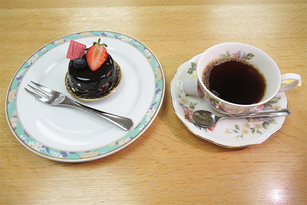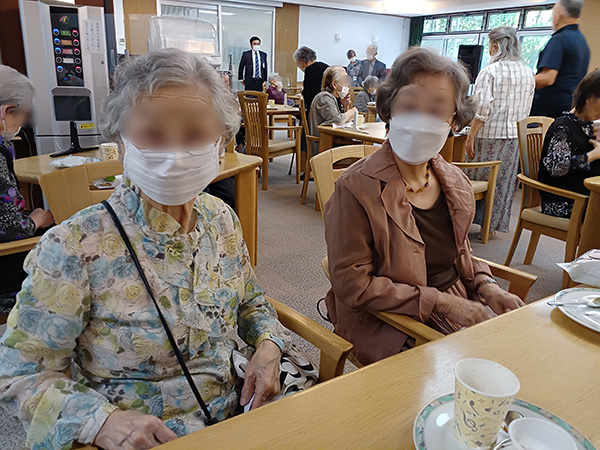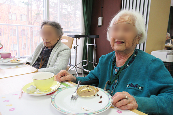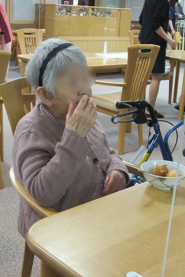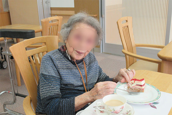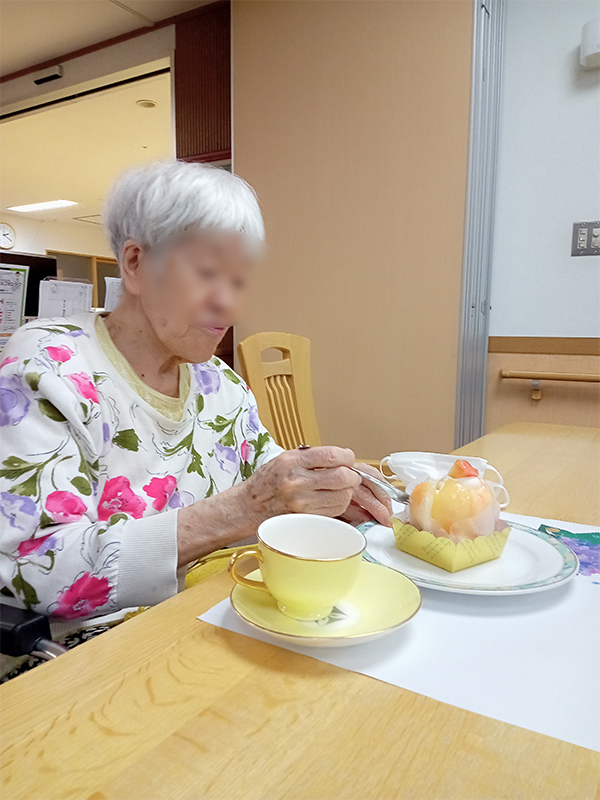 | 今月は、パティスリー・アカツキのケーキを準備してアイムス喫茶を行いました。 可愛いクマ、ハリネズミのケーキもあり「可愛いから何処からたべようか」と迷われている方 定番のイチゴショート、モンブラン、季節のケーキを食べて 今日のケーキは軽くて食べやすくて美味しいと笑顔で話され、入居者同士の会話も弾み 楽しい時間を過ごされていました。 |
