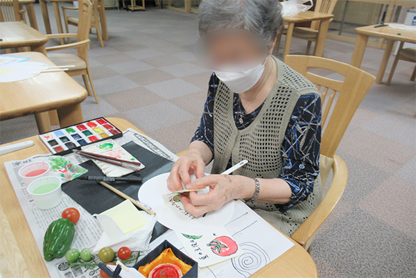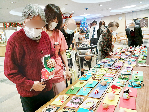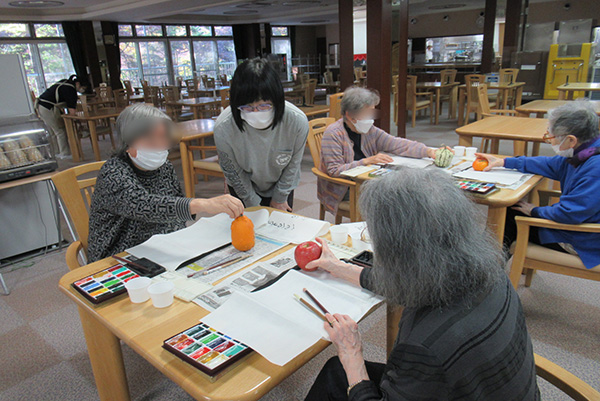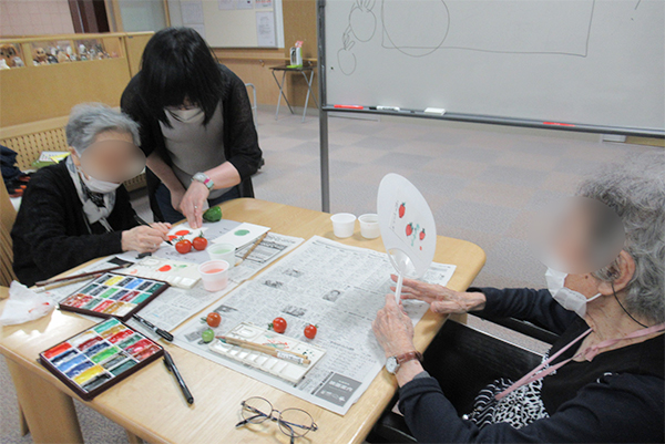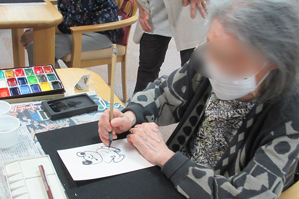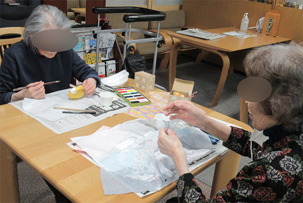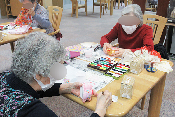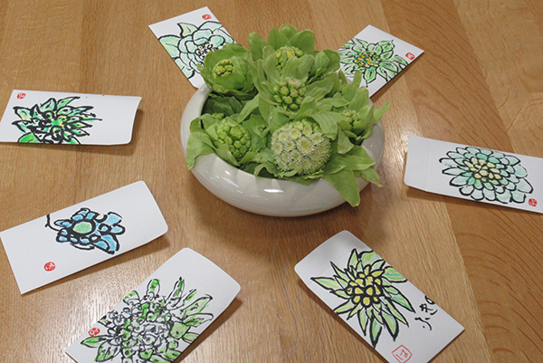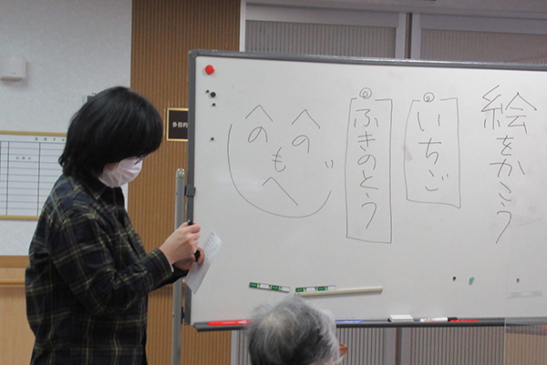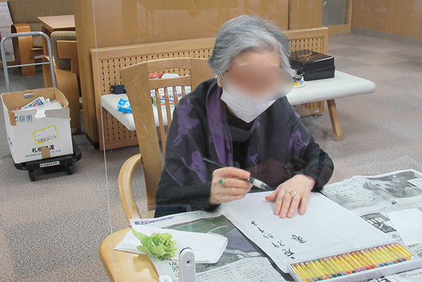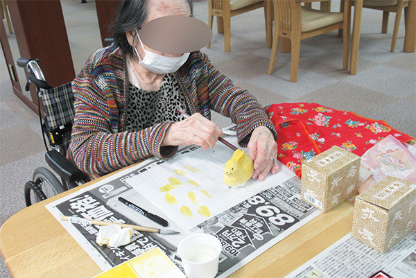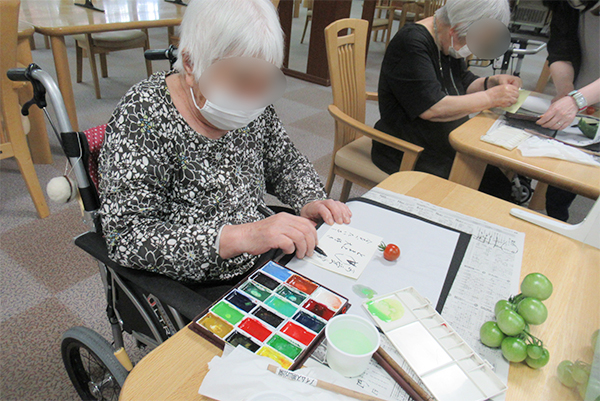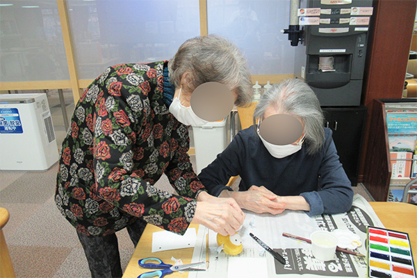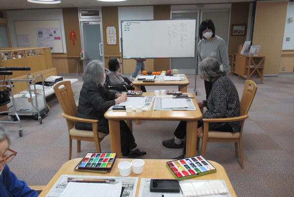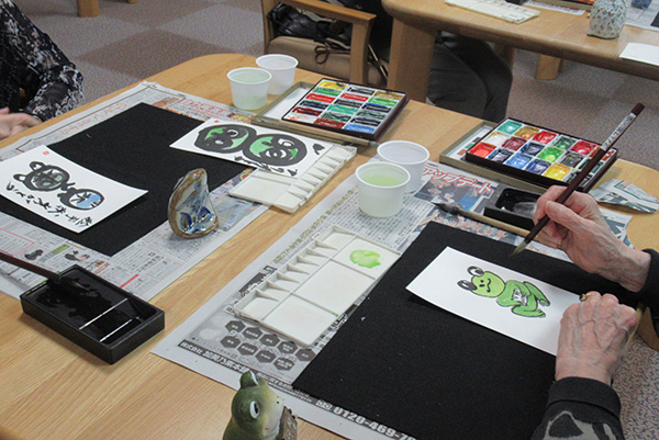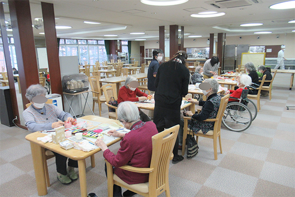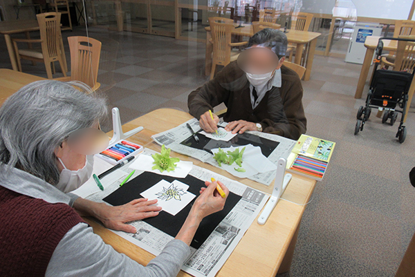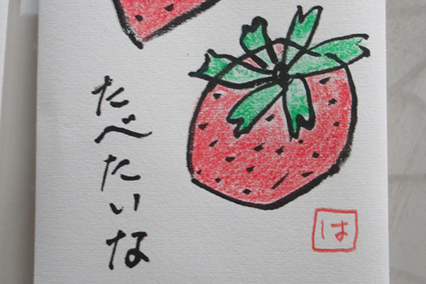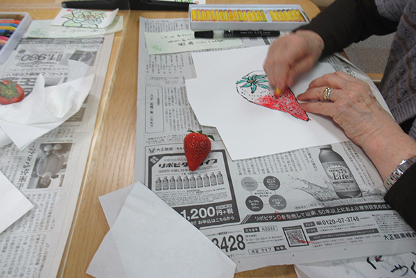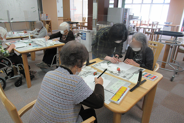| テーマ「手作りのポチ袋、封筒に季節の物を描く」 ポチ袋には、アイムスの庭で雪の下から顔を出した【ふきのとう】、 家族へのメッセージを入れた封筒には美味しそうな【イチゴ】を描きました。 4ケ月ぶりの絵手紙でしたが、皆さん上手に出来たようで講師にも褒められていました。 入居者からは、「今日は楽しかった」「良い気分転換になりました」と嬉しそうに話されていました。 |