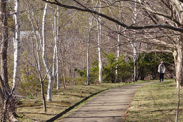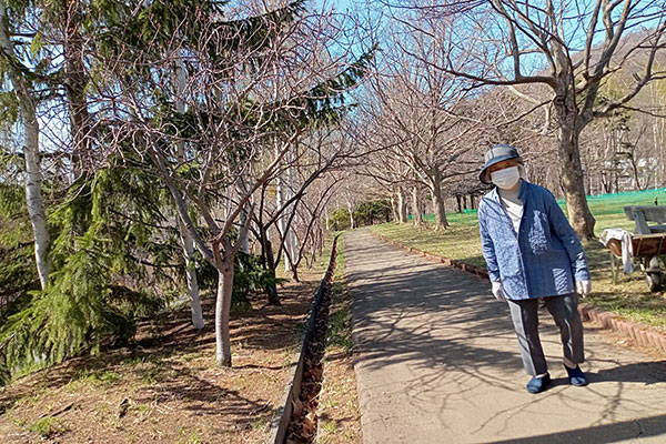 近頃は気温も高くなり、時には汗ばむ陽気の日も増えてまいりました。 高い場所に建っているアイムス旭山公園では麓よりもゆっくりですがようやく草木も春らしい装いとなりました。 アイムスでもパークゴルフ場が開放され、さっそく仲間を誘ってクラブを振る方々がいらっしゃいました。 散歩に出られる方も多くなり目線を上げて微笑んでいたり、鼻歌まじりに歩いていたりと春を満喫しておられるようです。 |