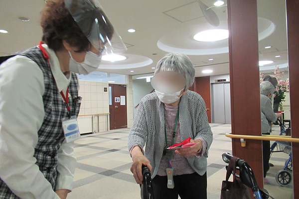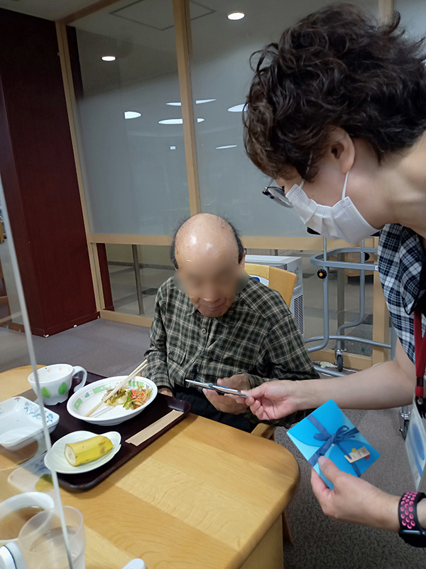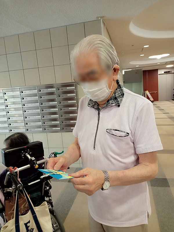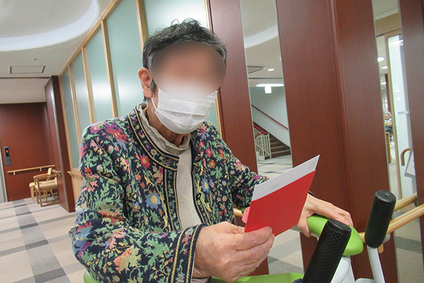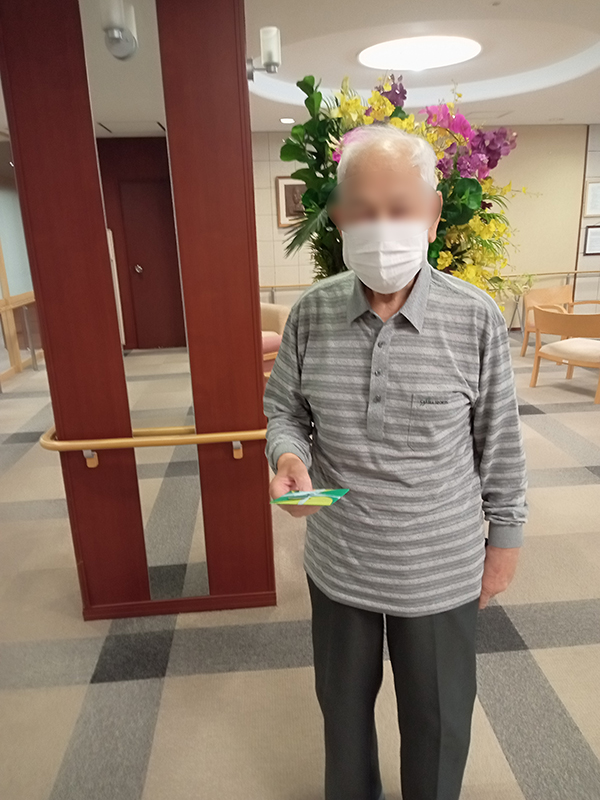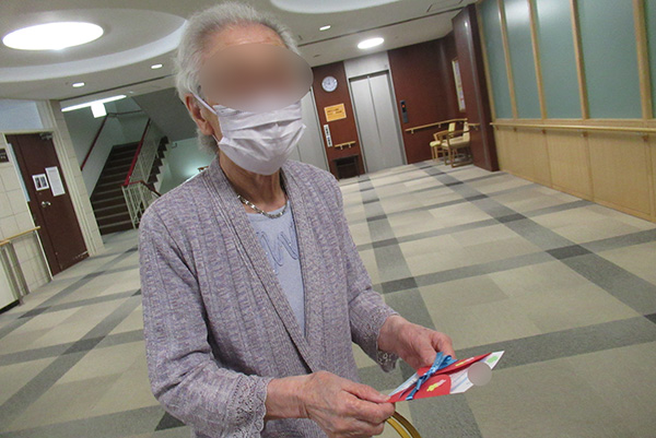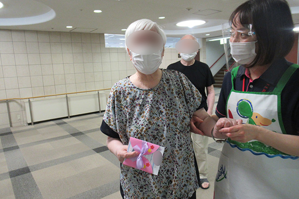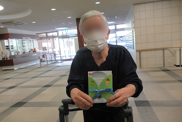 | 今日は父の日。日頃の感謝を込めて手作りのメッセージーカードを 職員からプレゼントしました。 渡したときの嬉しそうな顔や驚いた顔が見られました。 メッセージをみてもう一回楽しんでいただけたらと思います。 |