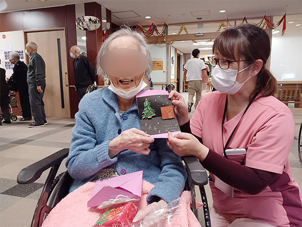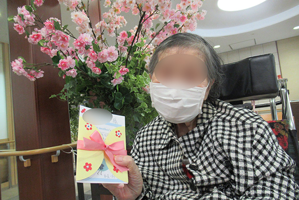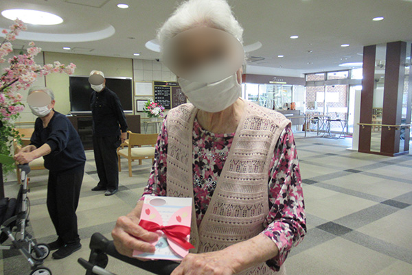 | 今日は母の日!ということで日頃より入居者様から元気をいただいているスタッフ一同でメッセージカードに感謝の言葉を綴ってお送りしました。 見た目も楽しめるようみんなで飾りつけましたので喜んでくれたらいいなと思います。 |