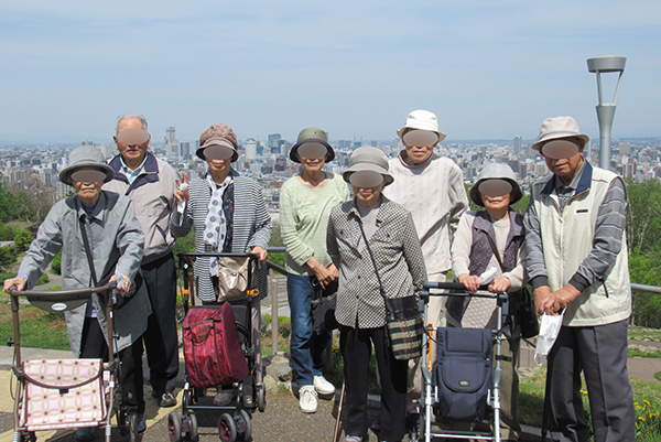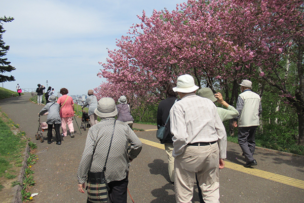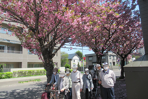 | 南円山の桜通りで八重桜を見学して「たま笹」でランチを楽しんできました。 天候にも恵まれ八重桜は満開で風が吹くと花びらが舞い散って入居者からも「綺麗」の声が聞こえてきました。 桜を満喫した後は海鮮ランチを堪能して旭山公園から札幌の景色を見て帰宅しました。 入居者さんからは、コロナ過で外出もできなかったので気分転換になってとても良かったと喜ばれていました。 |