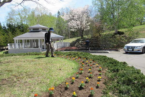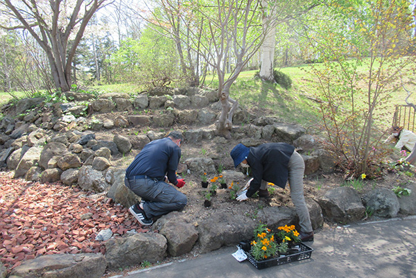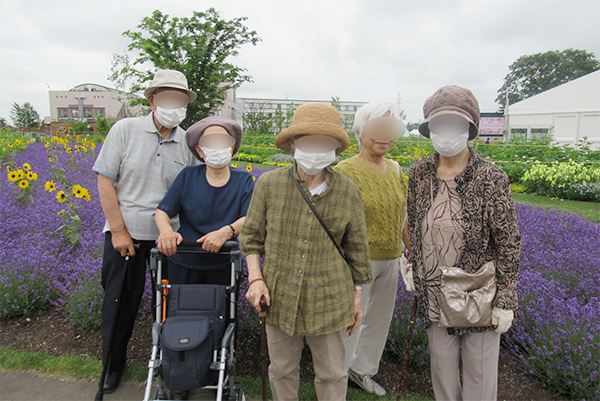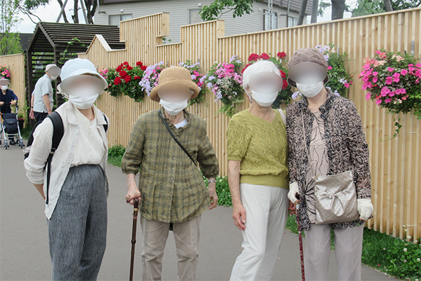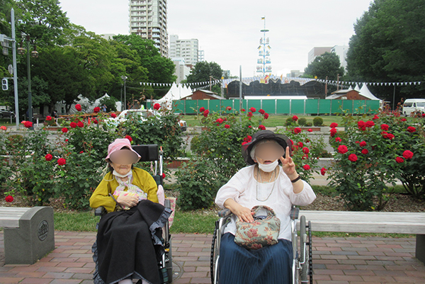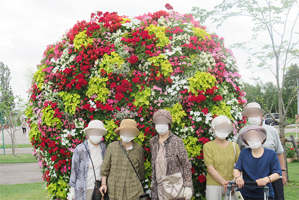 | 恵庭ガーデンフェスタに行ってきました。当日は時々小雨が降っていましたが会場に着くと雨は上がり、散歩日和。 手入れが行き届いた園内は色とりどりの花が綺麗に咲いて写真の背景にもってこいです。 入居者からも今日は来てよかったと話され、恵庭の道の駅でパンを買って帰ってきました。 午後からは大通りのローズガーデンに行き薔薇が咲き誇り皆さんご満悦でした。 |