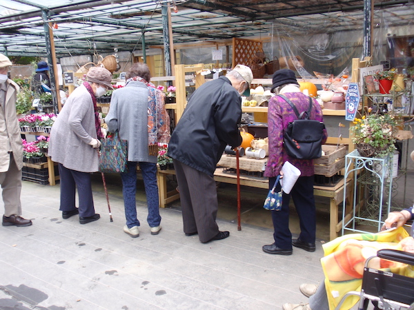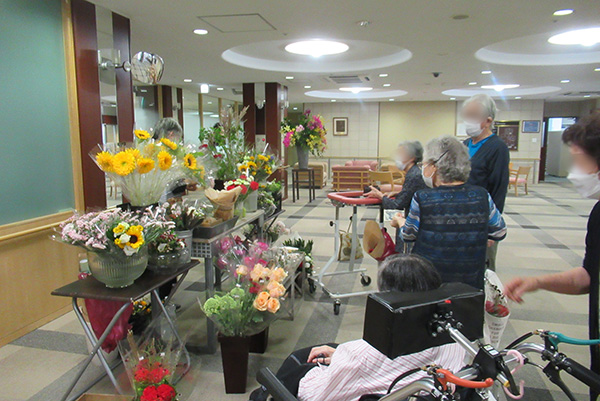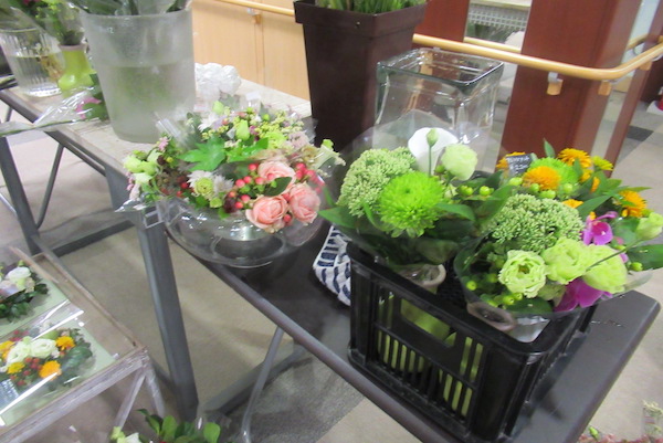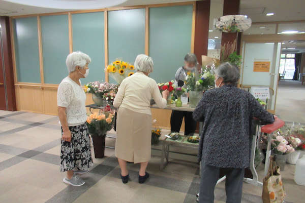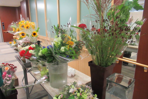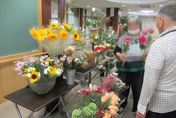 | 定期的に来ていたお花の販売がしばらくできなかったので今回は「HANAYASU」さんに来ていただきました。 お盆でもあったので、仏壇にお花をあげるため購入される方が多くみられました。 おしゃれなアレンジフラワーが店頭に飾ってあり、興味を持って見物に来られる方もいらっしゃいました。 |