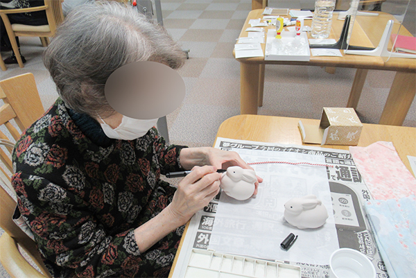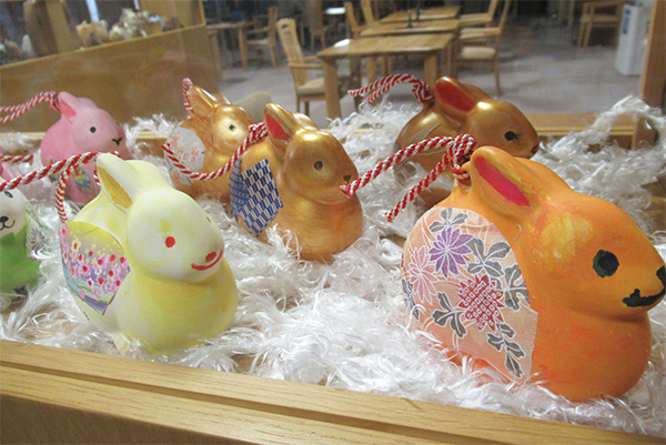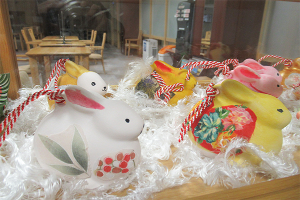 | 今日は来年の干支のウサギの土鈴の絵付けを行いました。 まずは真っ白な下地に目、鼻を入れると皆さん様々な表情のうさぎになります。 色付けを始めるとおめでたい金色、ピンク、黄色、黄緑等淡い春色の体になり和柄の布を切り貼りして個性豊かな装いとなりました。 出来栄えに皆さん満足され、家族が来ると完成した土鈴を見せて自慢をされていました。 |
