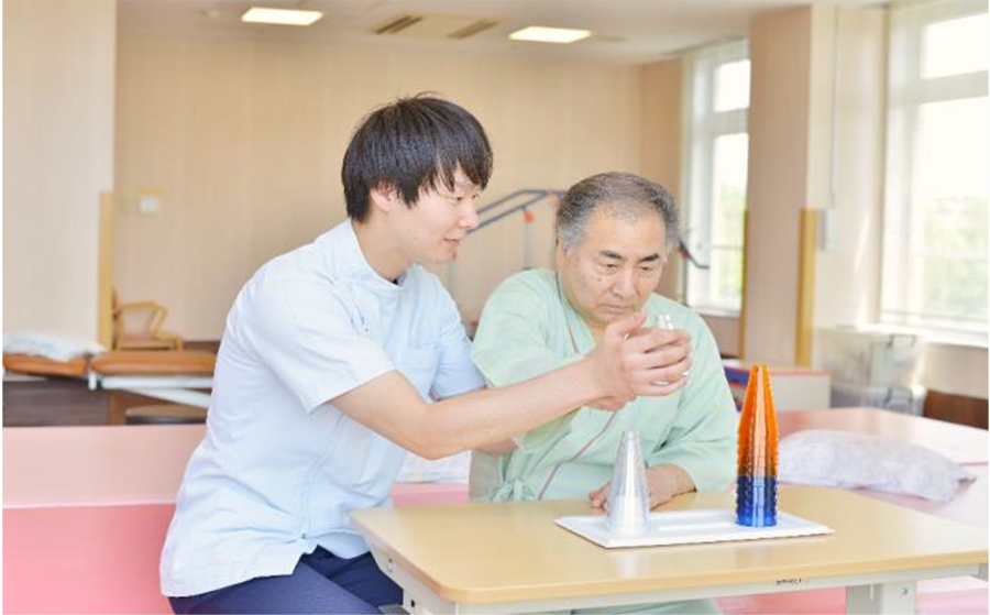 体や心の病気、怪我などの影響により困難になってしまった、日常生活における身の回りの動作(食事・トイレ・着替えなど)の再獲得に向けたリハビリをしております。 また退院後に必要な家事や仕事、趣味活動など一人ひとりの生活にとって大切にしていた作業の再開に向けた実地練習も行っております。