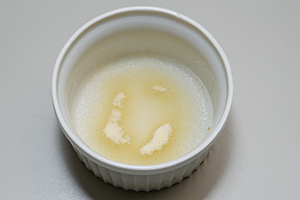 小さなボウルに水を入れ、粉ゼラチンを振り入れてふやかす