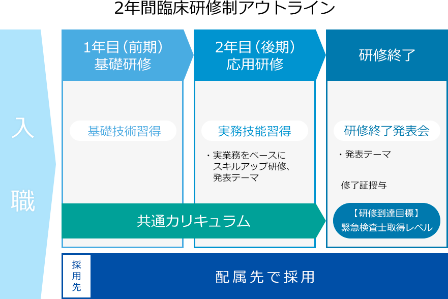 IMSグループ臨床検査部門では新入職員の採用後2年間を研修期間とし、基本的な臨床検査の能力を取得するための卒後研修制度を運用しています。