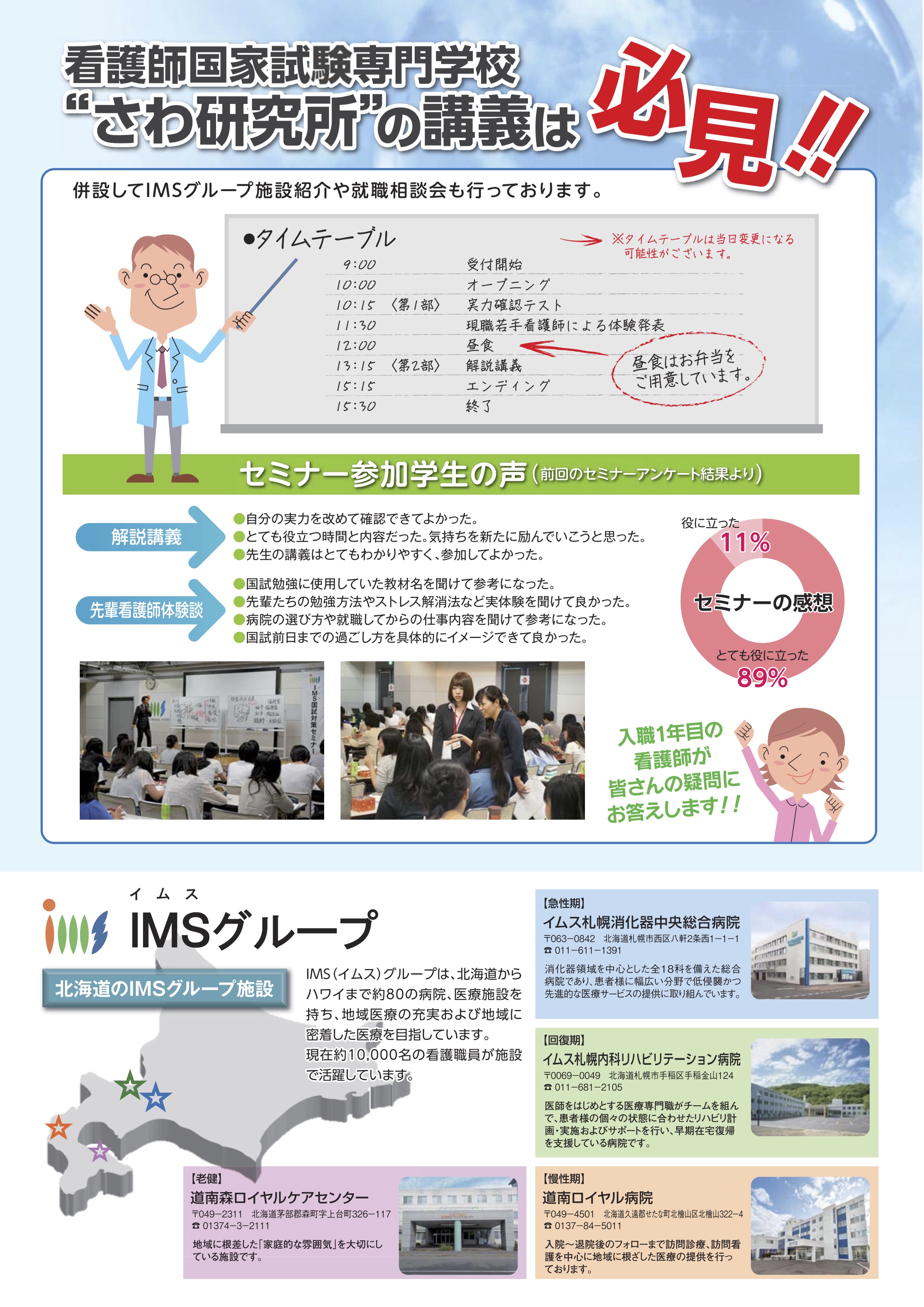 | 主催 | IMS(イムス)グループ IMS(イムス)グループは、136施設の運営を通し、急性期・回復期・慢性期・予防医療から 施設・在宅介護までの一貫した医療・介護を提供する、総合医療・福祉グループです。 現在、約10,000名の看護職員が各施設で活躍しています。 |
