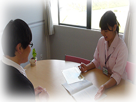 相談室では、患者さまが安心して外来通院や入院生活を送れるよう、病気やけがをきっかけに生じる生活上の心配事や問題について、医療ソーシャルワーカーや退院支援看護師が相談に応じ、患者さまやご家族と一緒に考えるなど、様々なお手伝いをさせていただいております。
