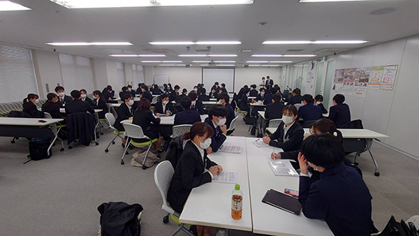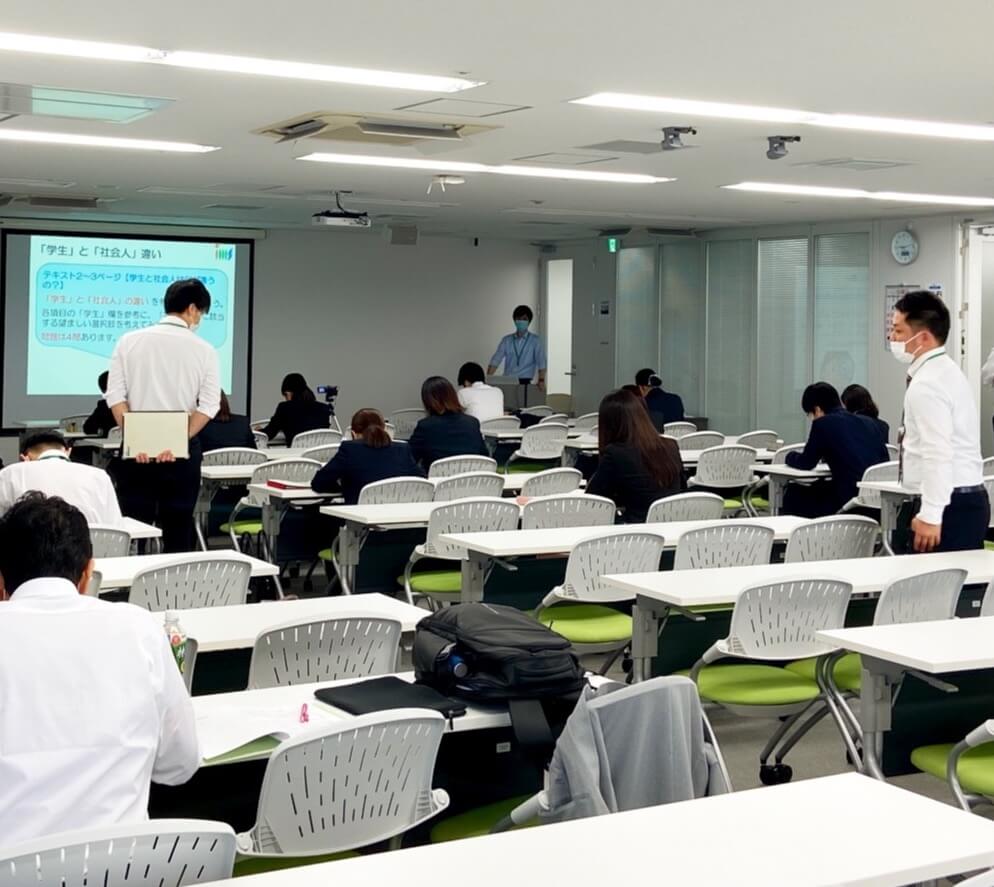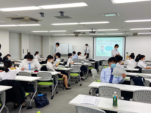 新人同士のコミュニケーション促進と情報共有の重要性を学ぶことを目的として、グループワークでは参加者が「どのような社会人になりたいか、そして目指す社会人像」について話合い、グループごとの成果を共有しました。