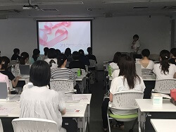 23回目の開催となった今回は、全20施設91名の女性診療放射線技師が参加しました。『検診マンモグラフィ個人認定 臨床画像評価の対策』では富士フィルムメディカル株式会社の方々を講師にお招きしました。認定試験の基本情報や採点評価となる画像評価の評価表の記入のコツ、実際の講義での質疑内容など、認定取得・更新の最近の動向を踏まえ講義していただきました。アイスブレイクでは動画内の仕掛けに気づけるかのゲームや女性技師のためのヘアケア講座「モテる女は艶が命!髪が綺麗になるたった4つの方法」、移転したIMS