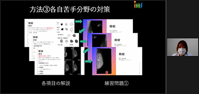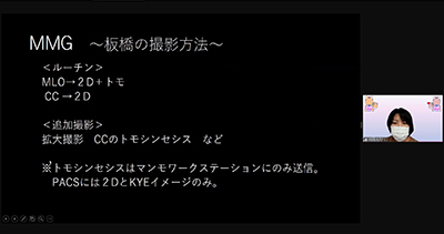 25回目の開催となった今回は、全20施設、79名の女性診療放射線技師が参加しました。『他職種に学ぼうシリーズ8~医事課編~』ではアイ・タワークリニック 医事課 坂本美穂課長を講師にお招きし、医事課の役割と業務、保険診療の基礎知識と放射線検査に関する診療報酬について実例を交え、わかりやすく説明していただきました。講義2『マンモグラフィ症例をカテゴリー分類してみよう!』では講師を板橋中央総合病院の野田さやか副主任に担当いただき、参加者はアンケート形式でカテゴリー分類にチャレンジしました。他にもポジショニングコンテストの参加の報告や移転施設の紹介動画など、参加者にとって大変有意義な内容となりました。次回は集合開催を予定していますが、グループ内での連携を深めながら知識の向上ができる研修会を企画したいです。
